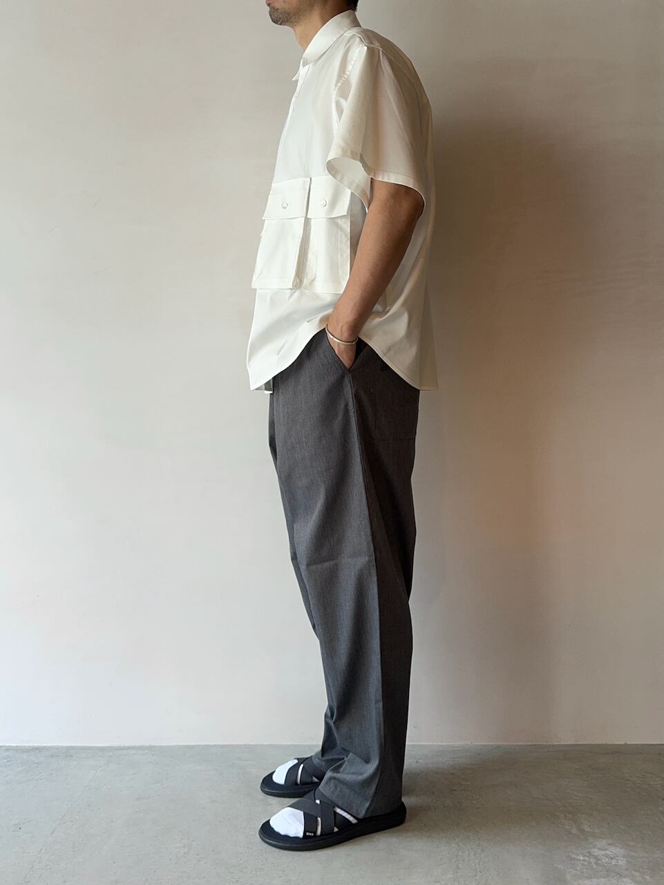 FreshServiceのDRY OXFORD FLAP POCKET S/S SHIRTは、数シーズンに渡り好評を博しているドライオックスシャツシリーズの一つです。特殊な断面を持つポリエステル糸を使用し、コットンライクな佇まいに仕上げながらも、優れた速乾性とドライな肌あたりを両立しています。