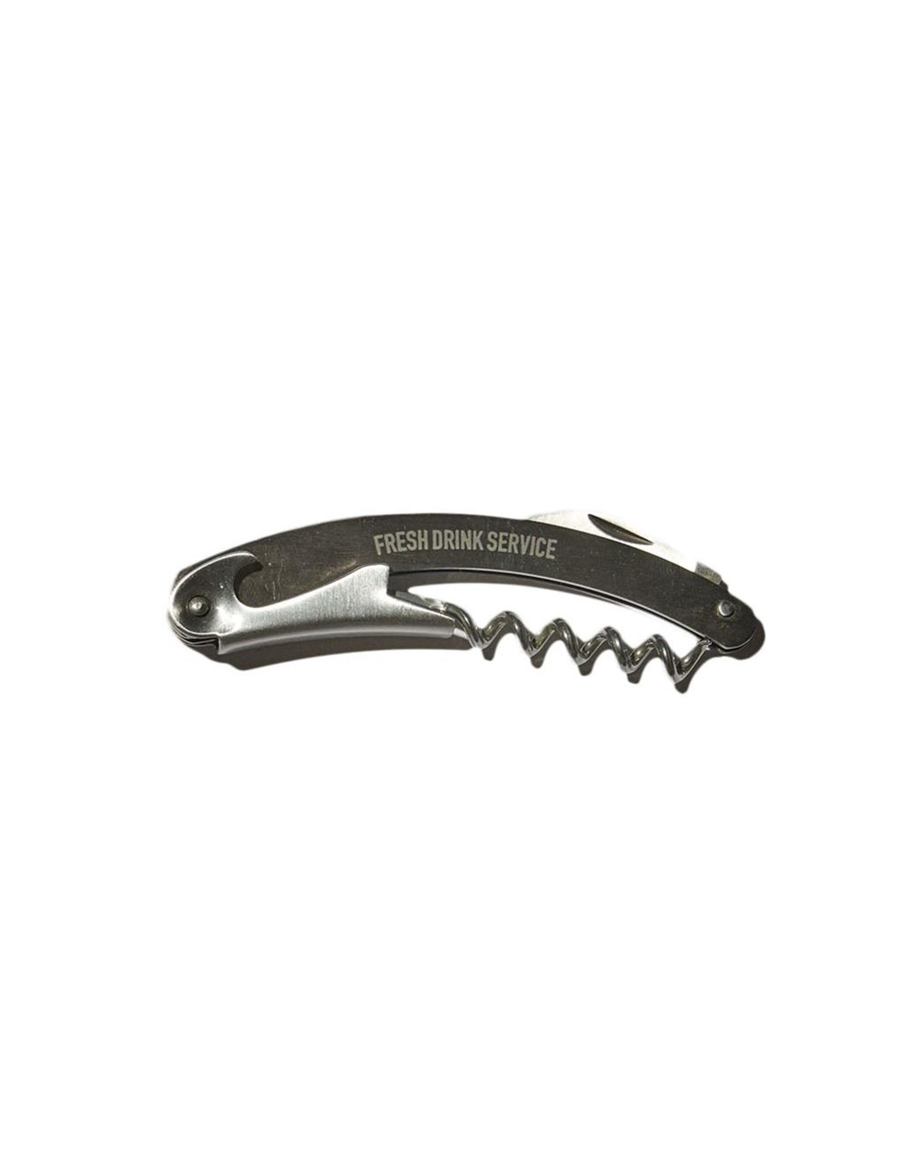 FreshService FDS WINE OPENER is a compact and foldable wine opener released as FRESH DRINK SERVICE. The handle is designed with a soft curved shape to fit comfortably in the hand for ease of use.