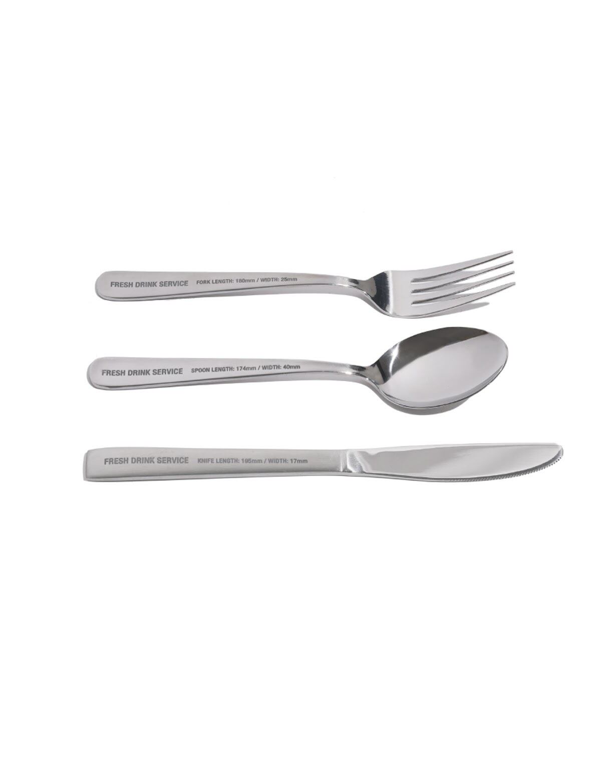 FreshService FDS FORKは、レーザー刻印で施された「FRESH DRINK SERVICE」ロゴが特徴的なフォークです。上質なステンレススチール素材を使用し、日本国内で丁寧に製造されたアイテムです。