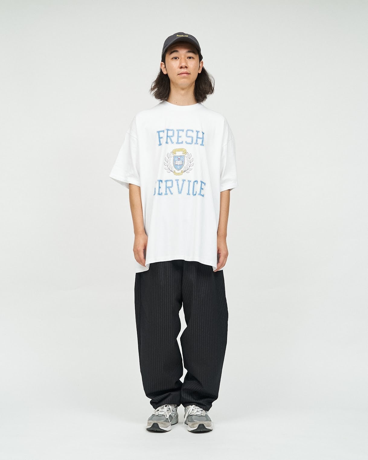 The round-body design with no seams on the sides provides a stress-free fit. FreshService's unique big silhouette, with its generous shoulder and body width, has a strong presence on its own and goes great with items such as chinos and jackets.