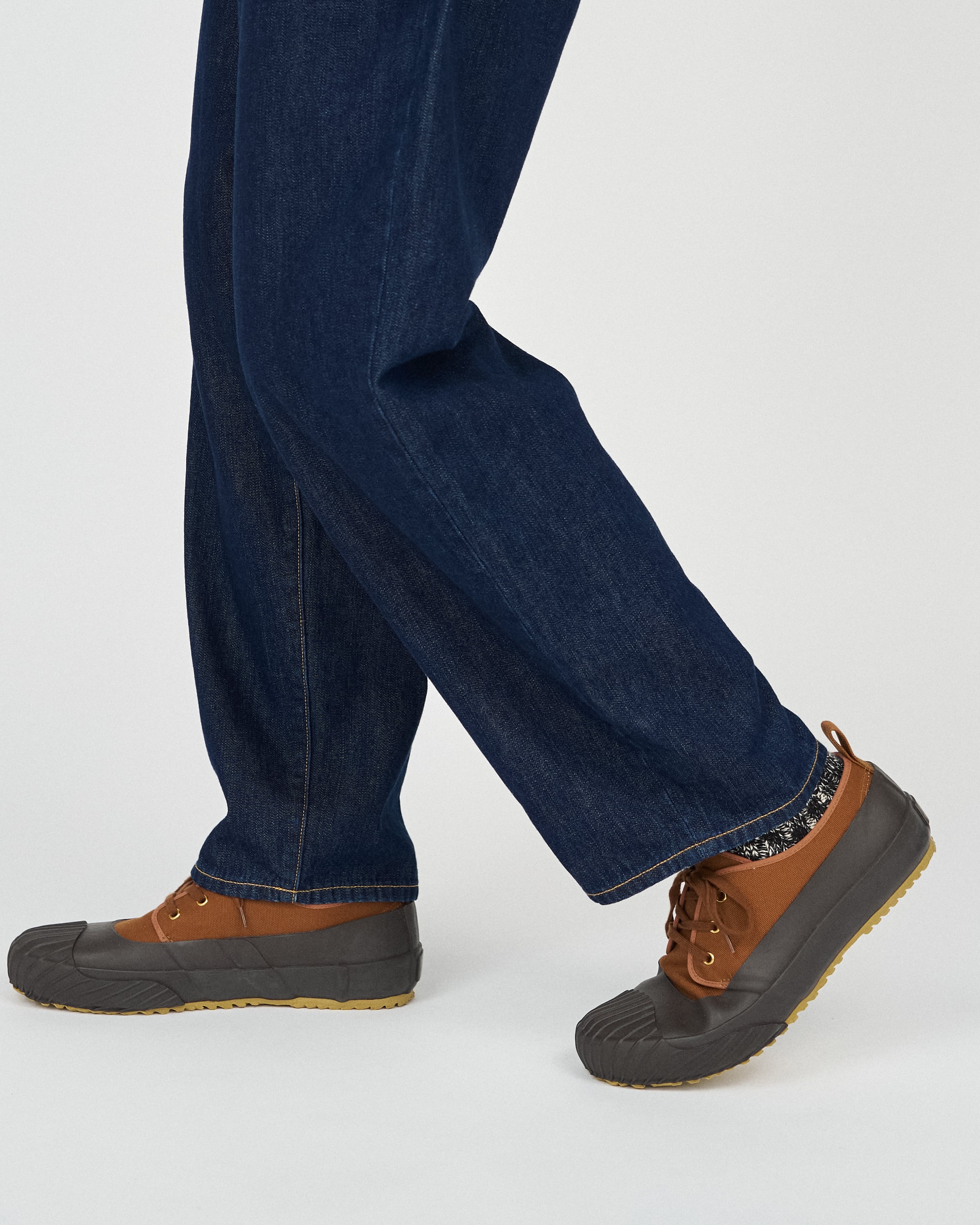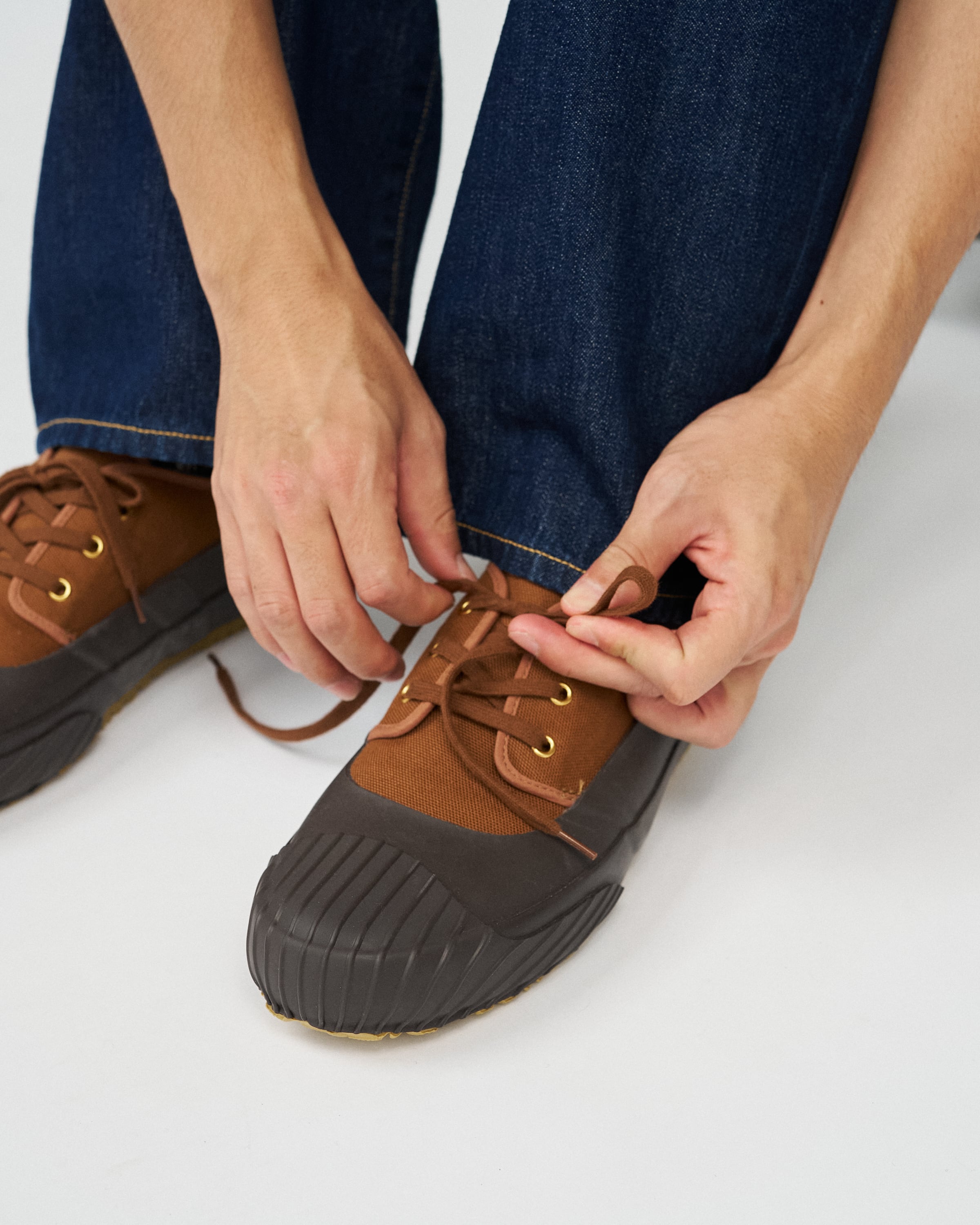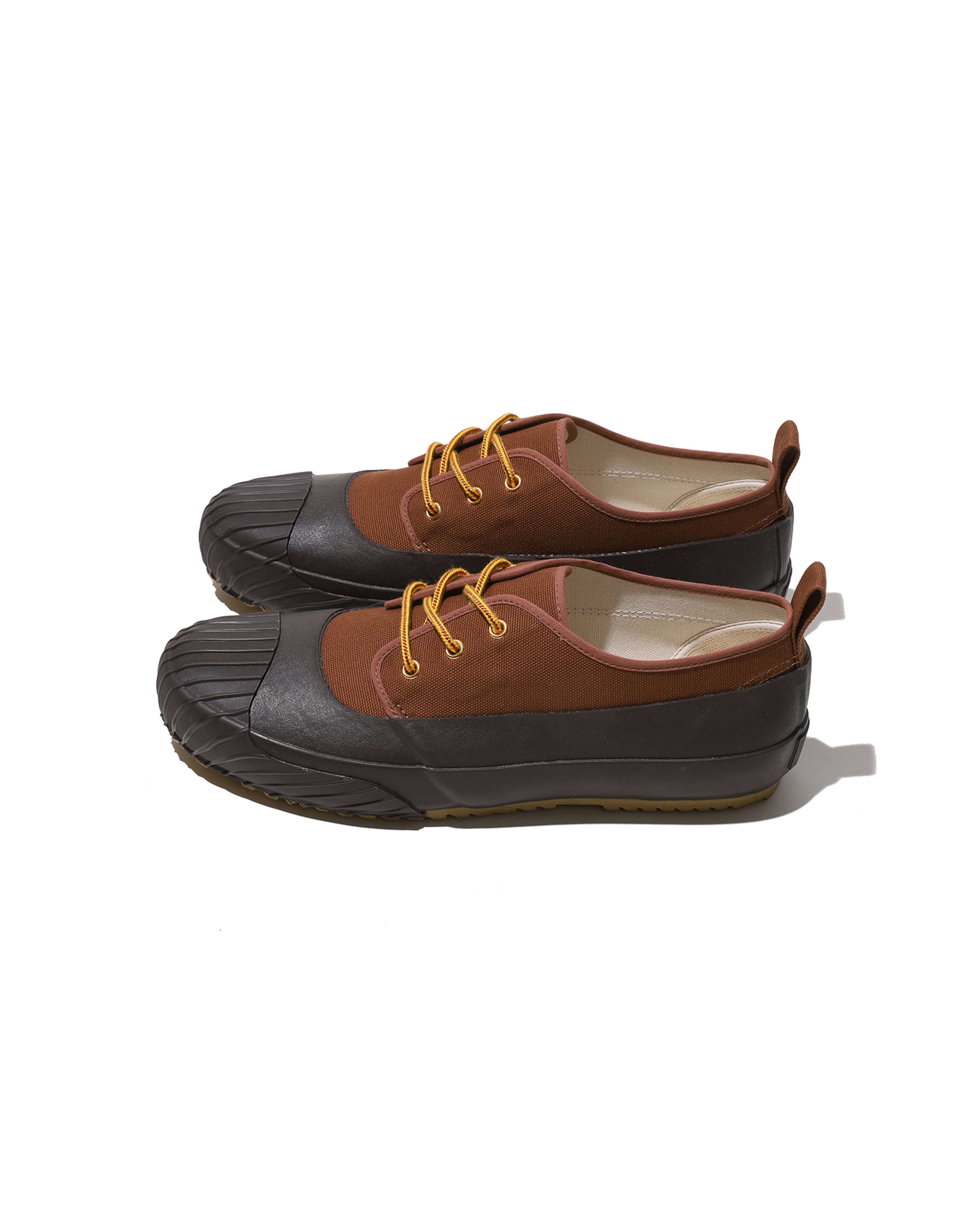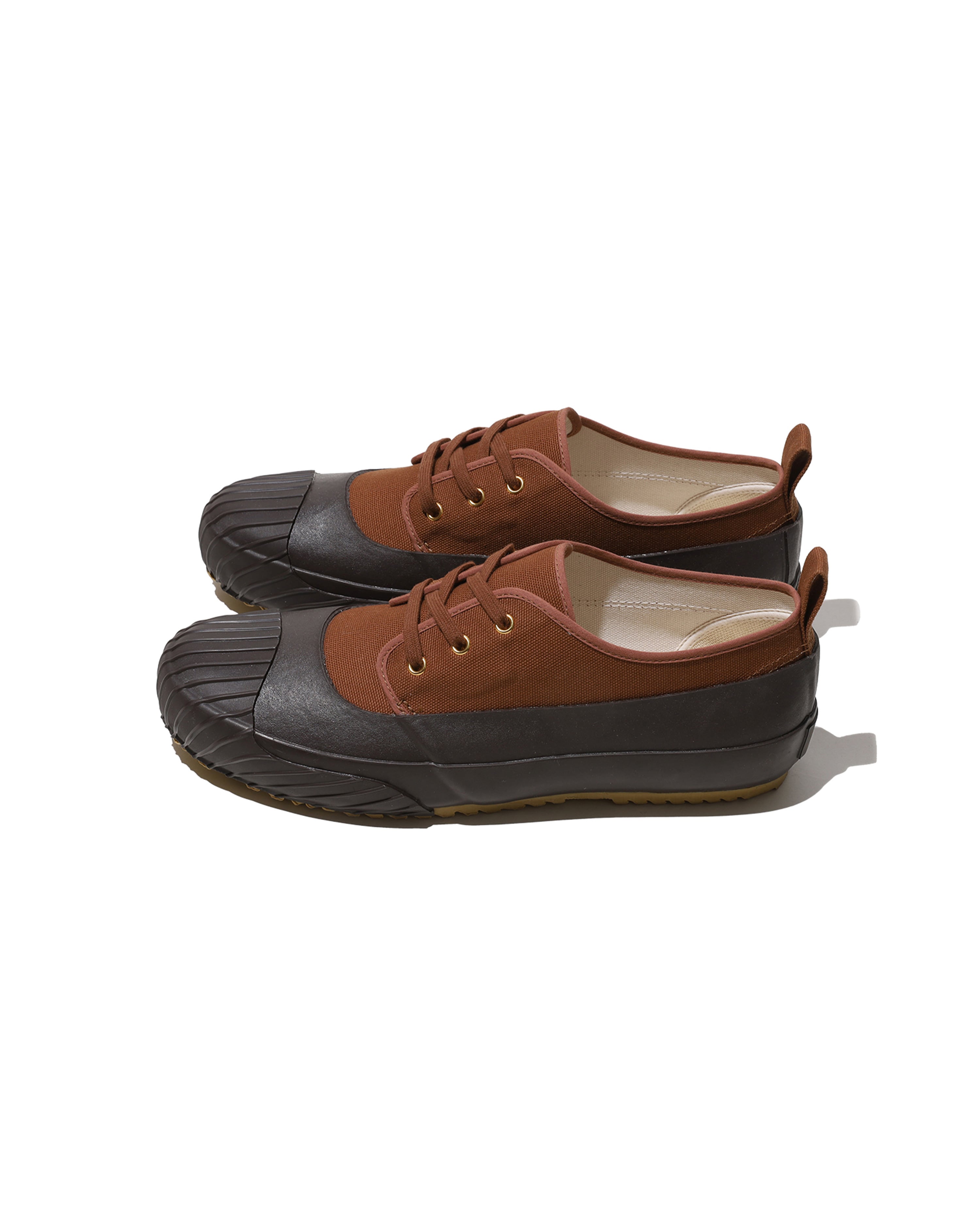 Its classic color scheme, reminiscent of vintage outdoor footwear, pairs perfectly with denim or wide-leg pants. Manufactured by the Fukuoka-based shoe brand MoonStar in Kurume, Japan, each pair is crafted using the vulcanized method by skilled artisans, resulting in a Japanese-made shoe that combines flexibility and durability.