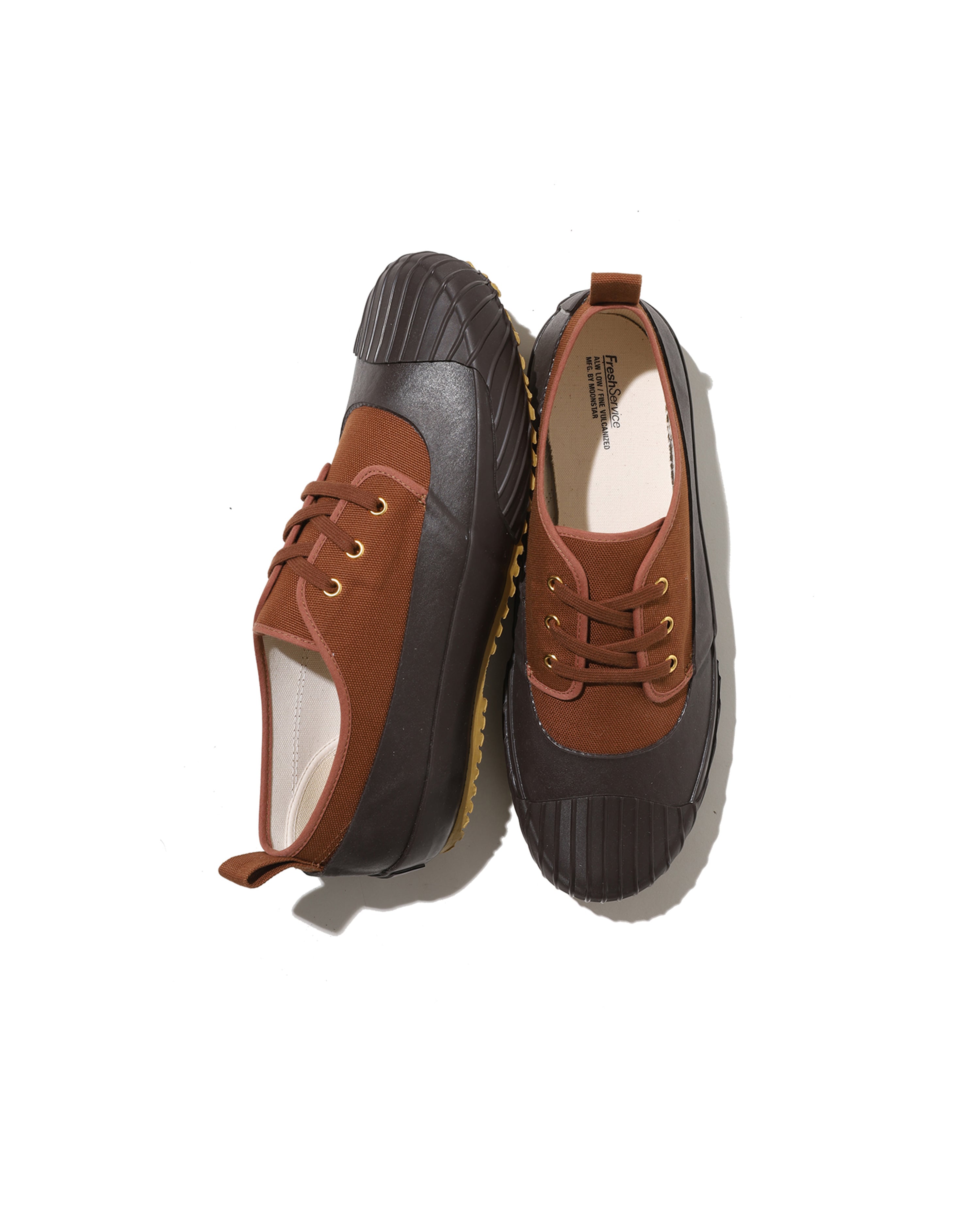 FreshService ALW LOW (ALL WEATHER) is an all-weather low-cut sneaker designed for comfort in both rain and shine. Its canvas upper and rubber sole combination features a rubber coating extending from the outsole to the upper, ensuring reliable wear even in challenging conditions.