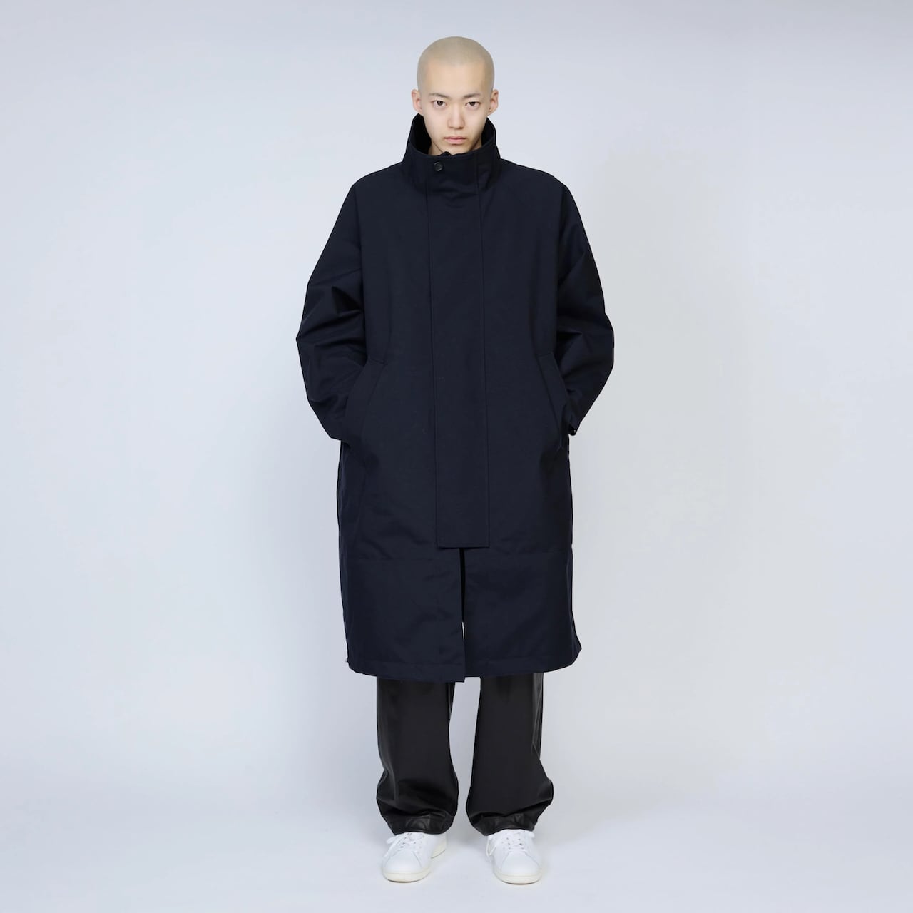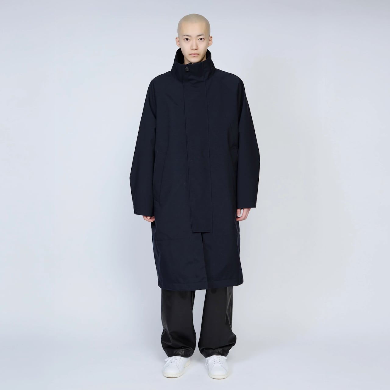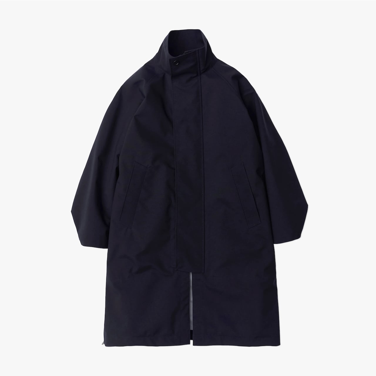 untrue 185 スタンドカラー3レイヤーコート は、天然素材のような質感を持つタスランナイロンオックスを使用したモダンな日本製アウターです。