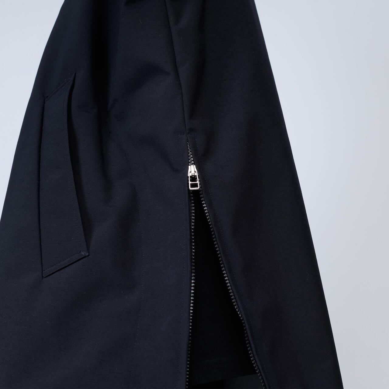 適度なハリのある生地が立ち上がる襟やダイナミックなシルエットを際立たせ、洗練されたモダンな印象を演出。袖口のボタンでシルエットやフィット感を調整可能で、両サイドの腰まで上がるジップはベンチレーション機能を兼ね、車や自転車使用時にも快適な可動域を確保します。