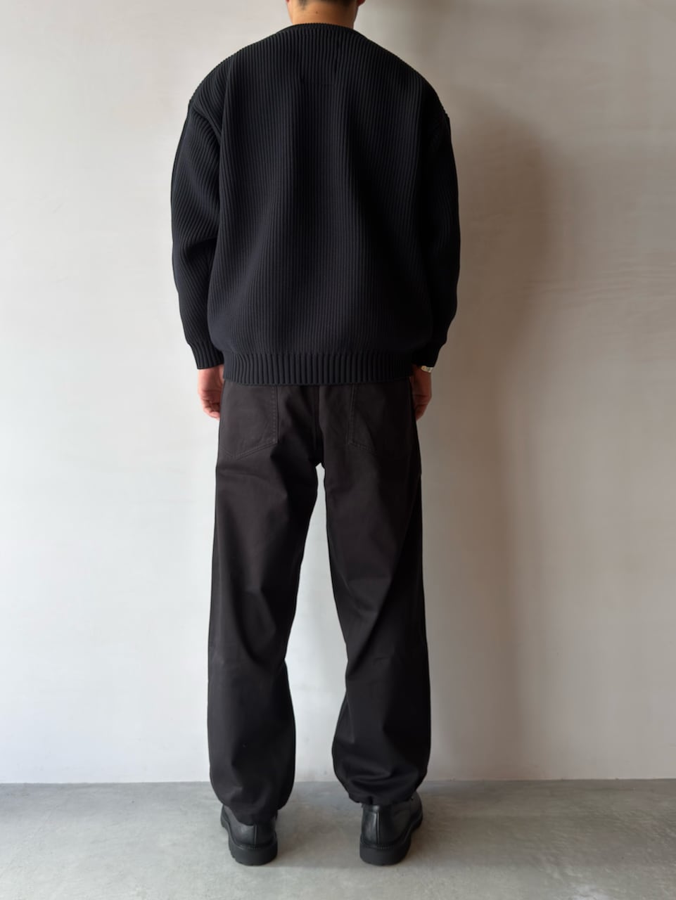 ホームクリーニングも対応で裏返して洗濯ネットに入れてオシャレ着洗い、干す際にはハンガー干しよりもボディを載せるような平干しを推奨します。通気性ニットなどのスタイリングに活躍します。比較的にイージーケアで使い勝手の良いテックニットは一枚あると重宝します。