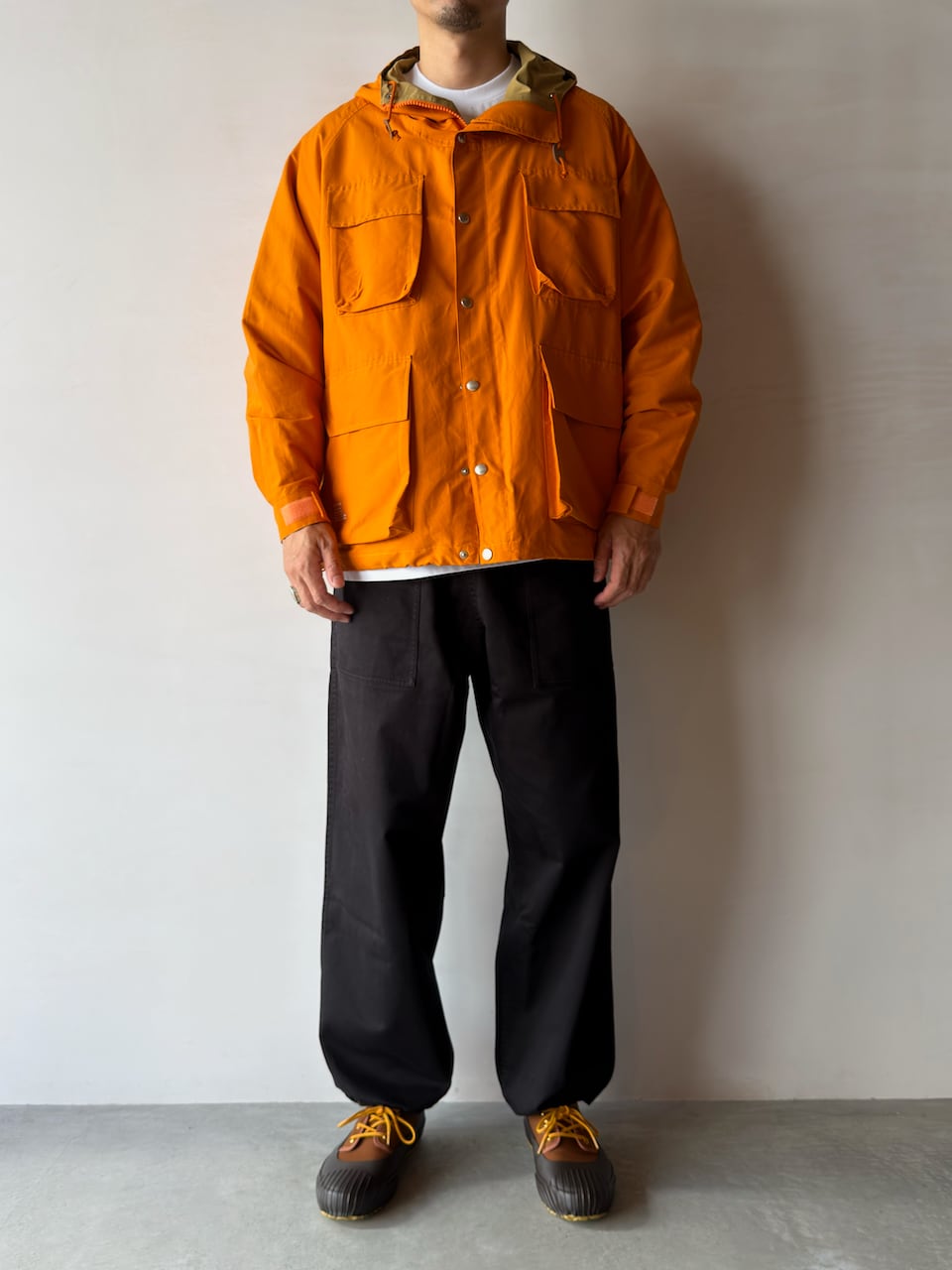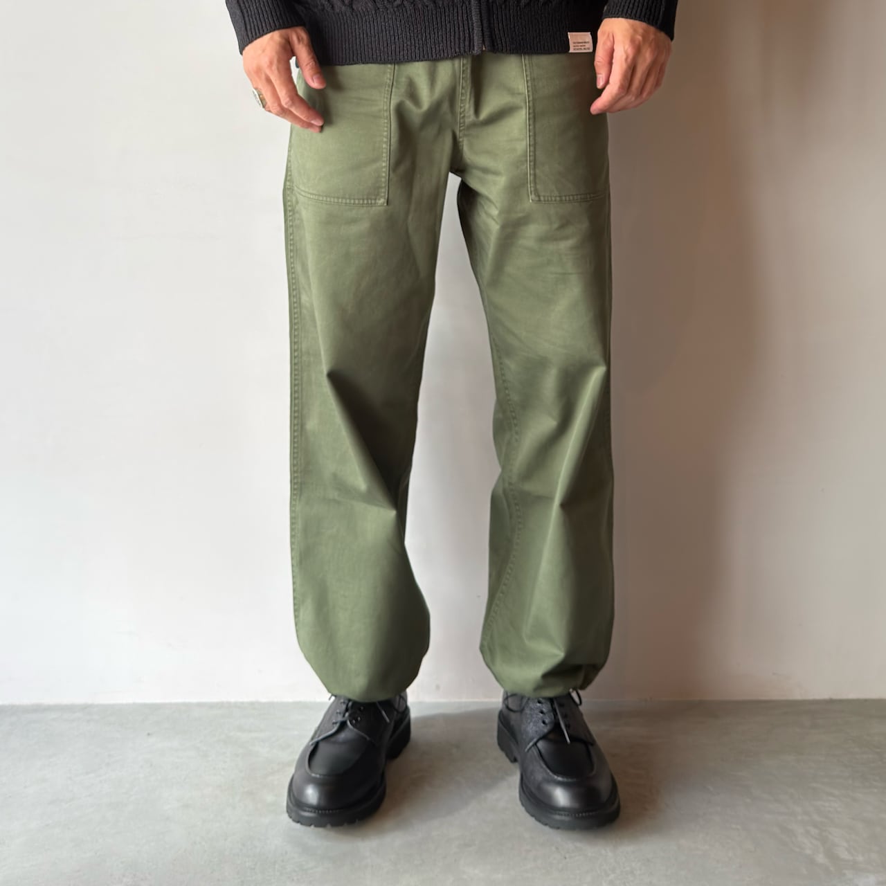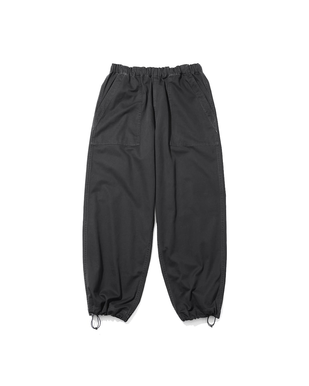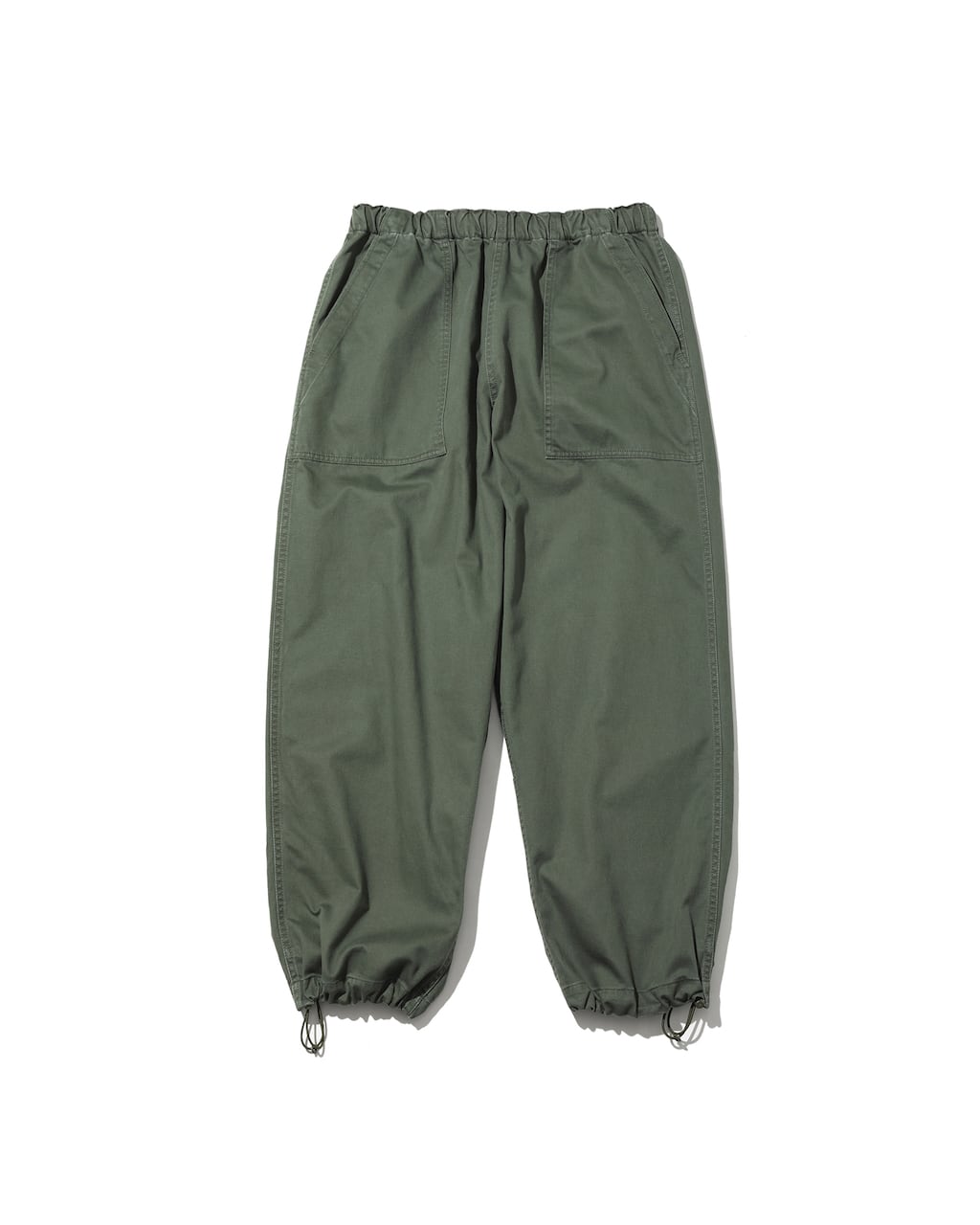 ウエストや裾にはドローコードを配し、シルエットの微調整や着脱を容易に。リラックスしたワイドシルエットは、ストリートスタイルからカジュアルコーデまで幅広く活躍します。タフな作りと経年変化による風合いで、長く付き合える一本です。