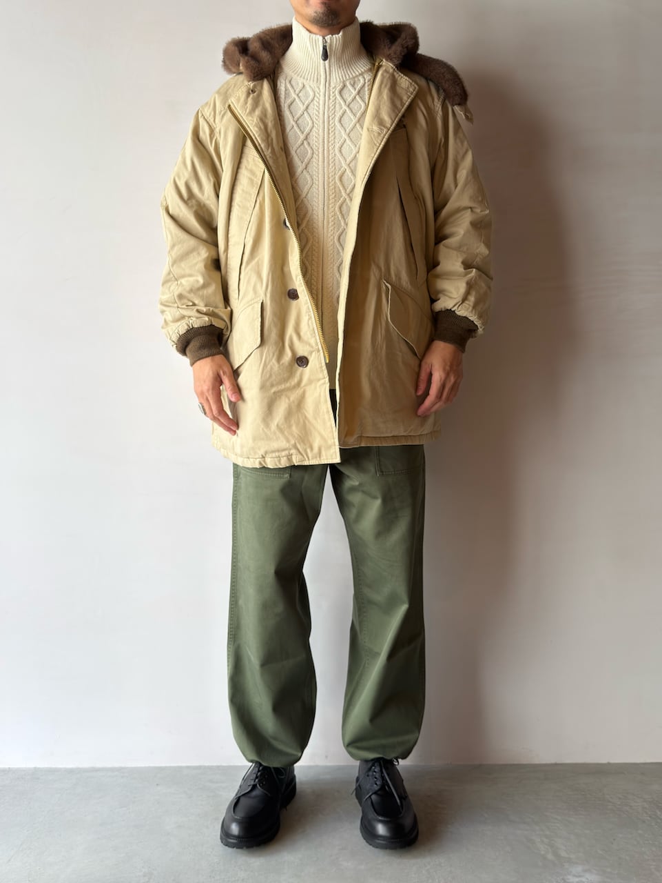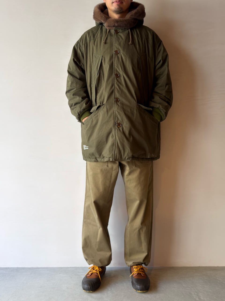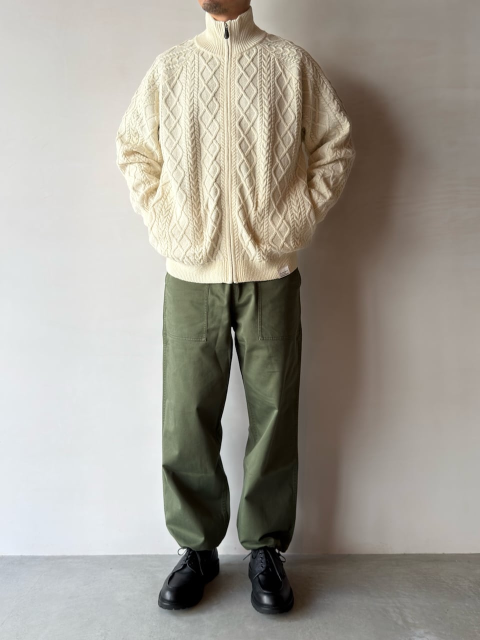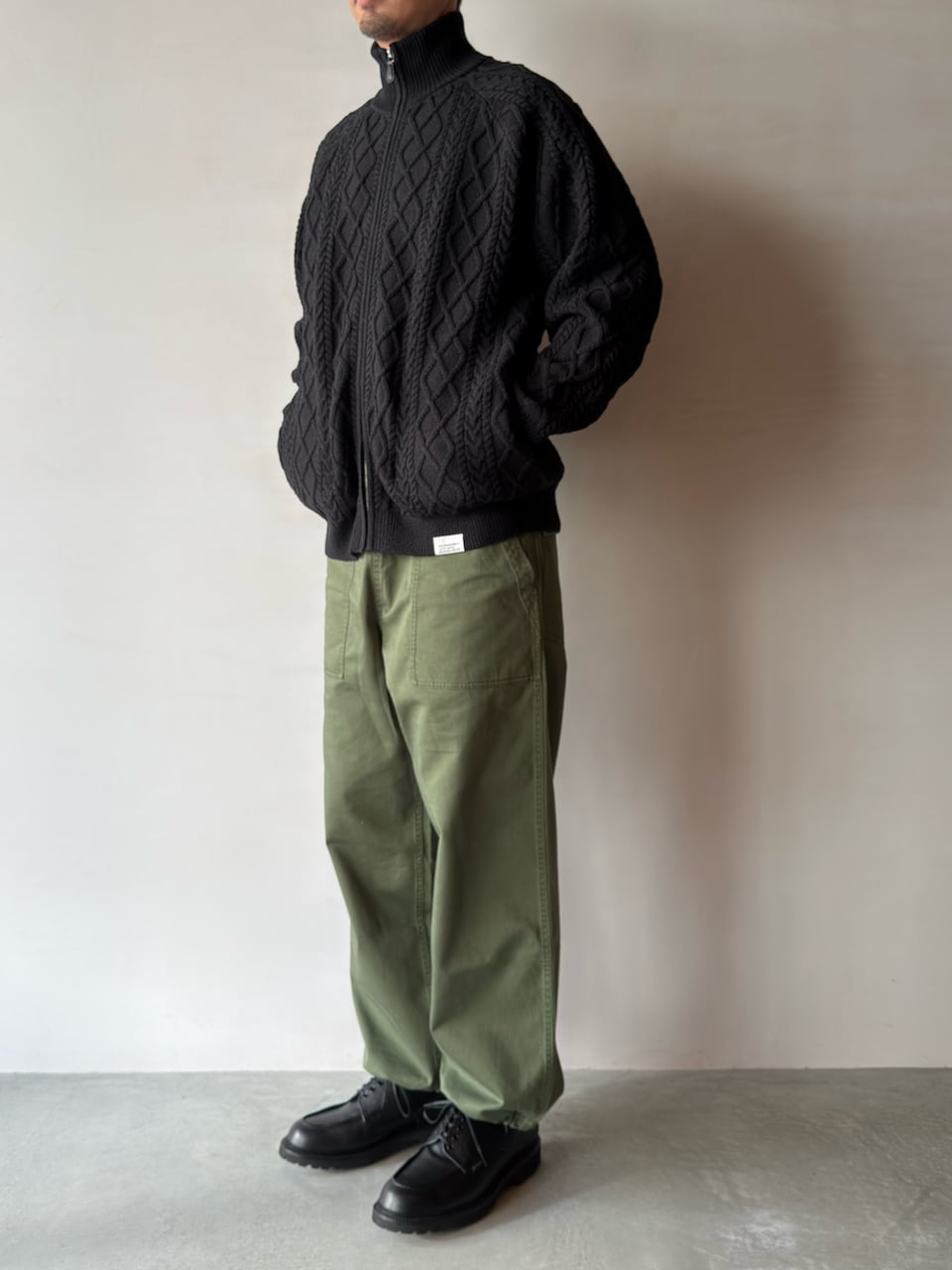 ウエストや裾にはドローコードを配し、シルエットの微調整や着脱を容易に。リラックスしたワイドシルエットは、ストリートスタイルからカジュアルコーデまで幅広く活躍します。タフな作りと経年変化による風合いで、長く付き合える一本です。