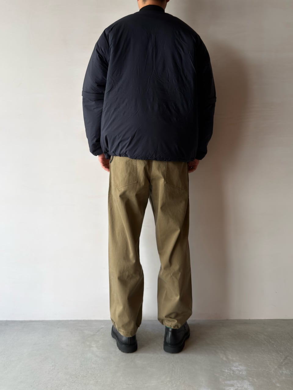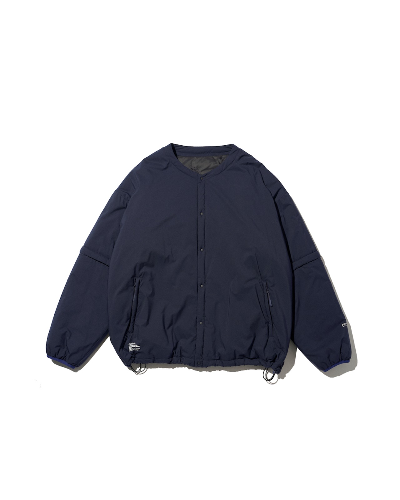 PERTEX® QUANTUMのミニリップストップ生地を使用したスナップボタン仕様のノーカラージャケット、しかもありそうで無かった袖が取り外せる中綿使用タイプ、楽しみ方が広がる一枚をお見逃しなく。