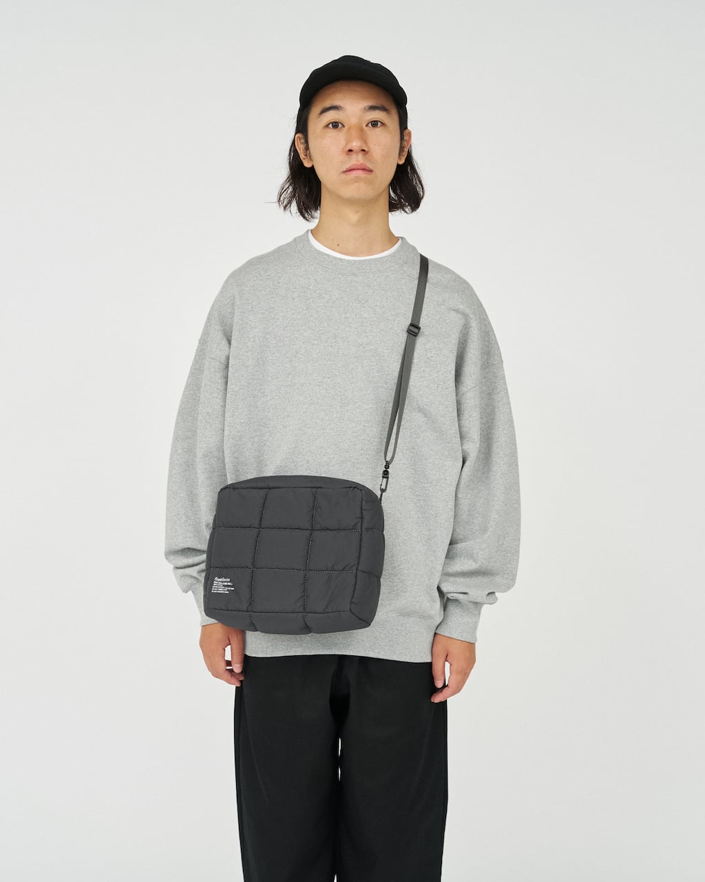 The FreshService QUILTED CUBE BAG_L is a large-sized quilted bag crafted from micro ripstop fabric using nylon 66. It offers excellent abrasion resistance, a smooth feel, and a lightweight yet refined finish. Characterized by its puffy quilted texture reminiscent of a down jacket, it boasts a distinctive, substantial form.