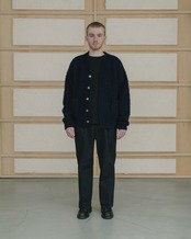 Meticulously produced in Japan, this piece embodies PHIGVEL's signature aesthetic of vintage reconstruction and craftsmanship. It's a versatile classic cardigan knit that works perfectly as an autumn/winter outerwear piece or as a layer under oversized coats.