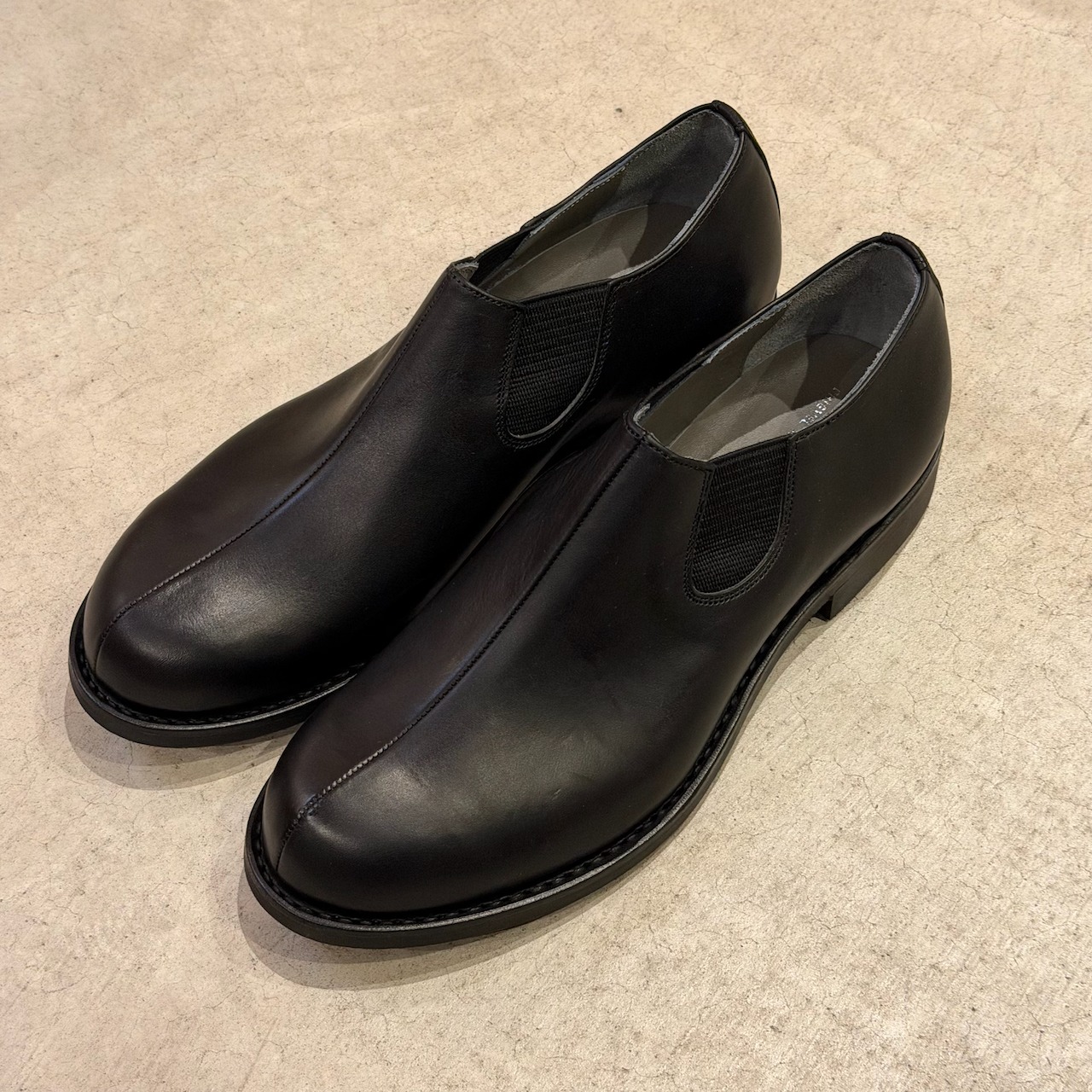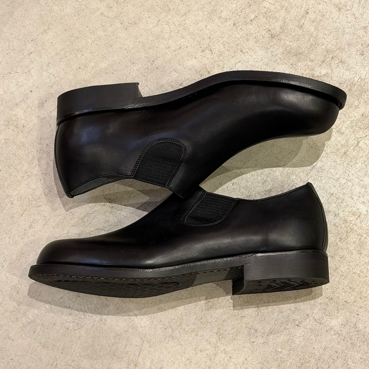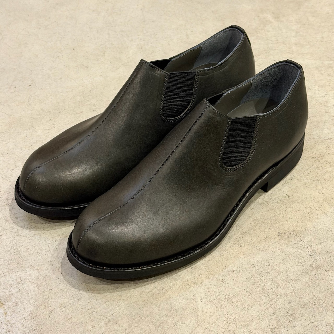 A low-cut side-gore shoe with a distinctive center stitch design. Its sharp silhouette creates an elegant impression from the feet up. PHIGVEL's years of experience crafting various leather shoes have elevated the refinement of this new model. Its form and sole construction make it versatile within the PHIGVEL lineup, easily pairing with everything from military trousers to dress slacks.