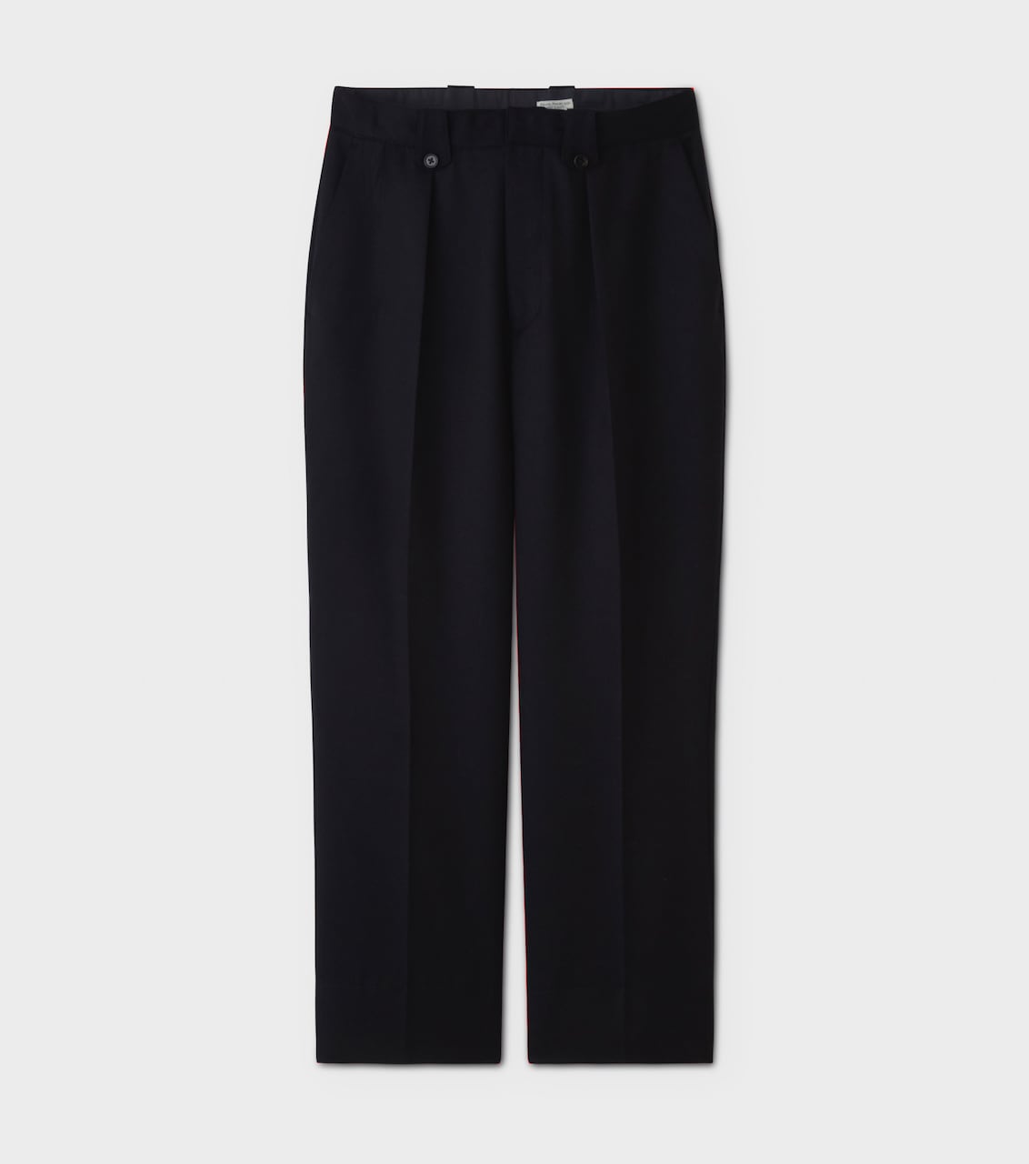 Crafted from lightweight wool suitable for any season, these trousers expand your styling options—from sophisticated adult looks paired with jackets and shirts to mixed styles with workwear or military-inspired tops.