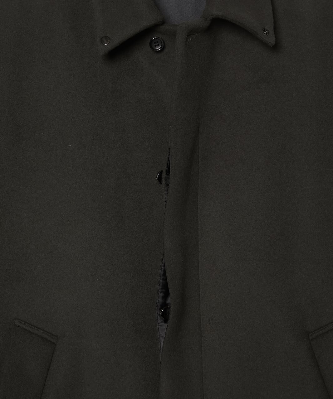 The fabric utilizes melton made from ultra-fine gauge wool yarn. Characterized by a soft, high-quality surface and supple drape, it achieves a light, airy feel despite its substantial appearance. The lining employs N.HOOLYWOOD's original jacquard weave, ensuring smooth sleeve movement and showcasing refined craftsmanship when removed.