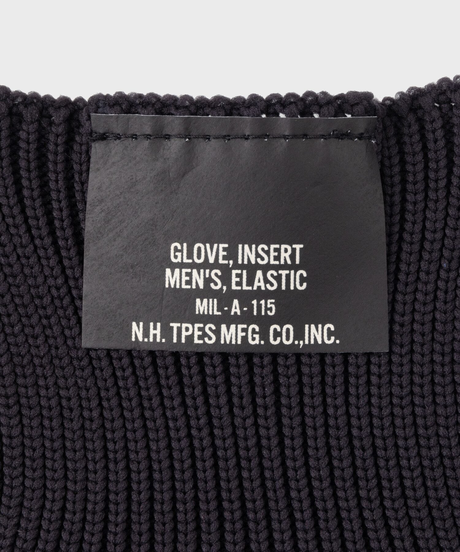 N.H.TPESオリジナルのミルスペックを配置し、ロゴをプリントした指ぬきグローブ。