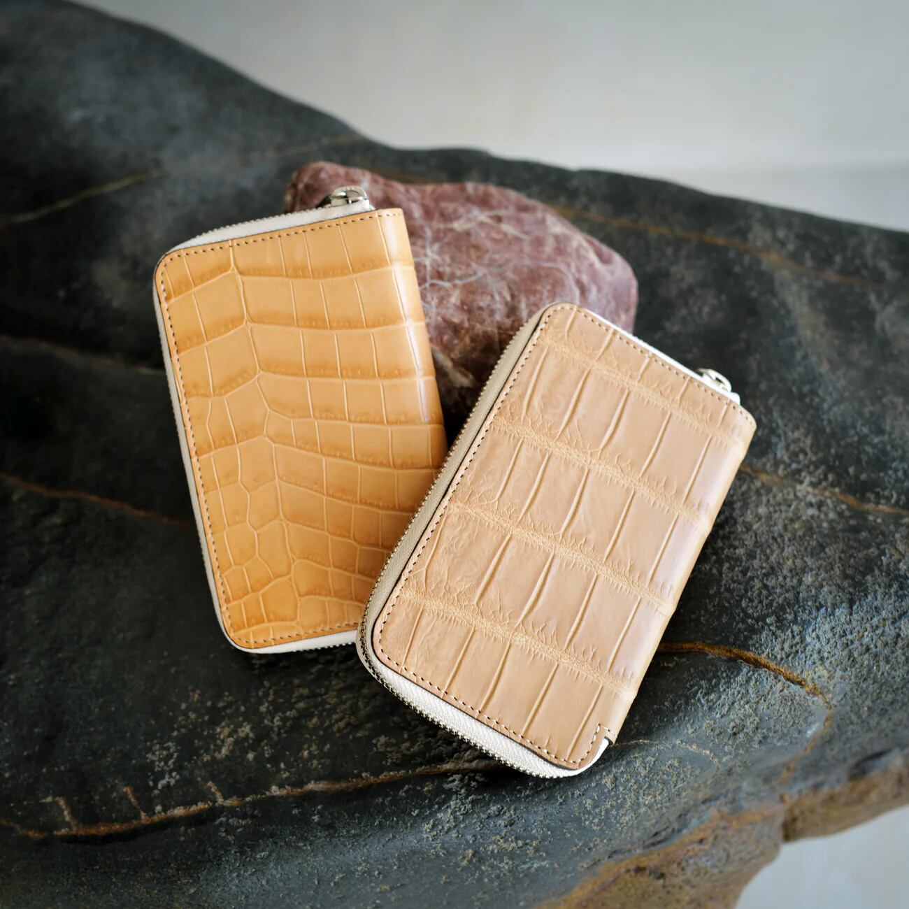 希少なクロコレザーを使用した定番で展開しているスマートフォンサイズのミディアム財布、CRISTY SMART MID WLT(クリスティスマートミッドウォレット)。二つ折りでラウンドファスナー仕様となっており、見た目に反して驚くほどの収納力を誇ります。