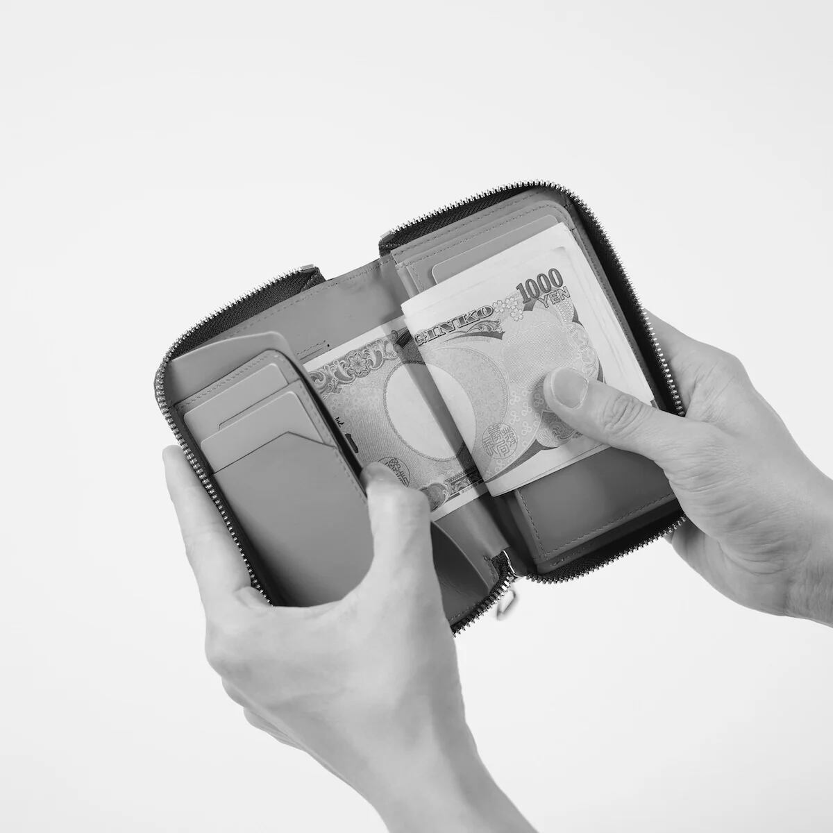 It includes a box-shaped coin pocket, card slots for up to 11 cards, and two additional free pockets. While its capacity is smaller than a full-size wallet, it neatly organizes coins, bills, and cards. It's especially recommended for those who need to keep receipts organized.