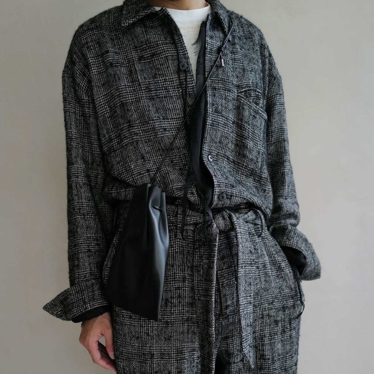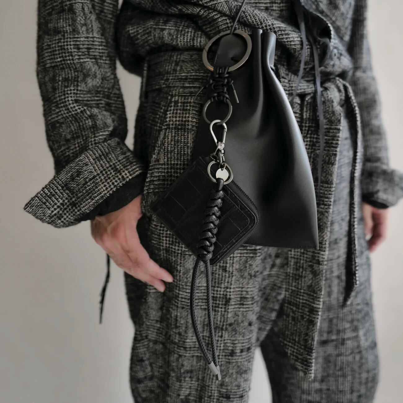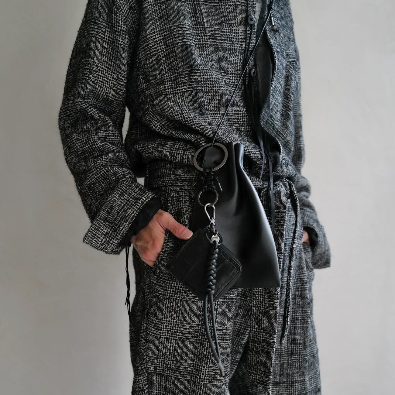ネイティブアメリカンバッグをモチーフにしたPMサイズの巾着ポーチ。縫製、コバ処理、パーツの形状をミニマルかつ綺麗に仕上げることで、類を見ない新しい印象のアイテムに仕上がっています。 サイドにマチを設けることで、財布・携帯・メモ帳など、必要最低限なものプラスアルファを持ち歩ける便利なサイズ感。