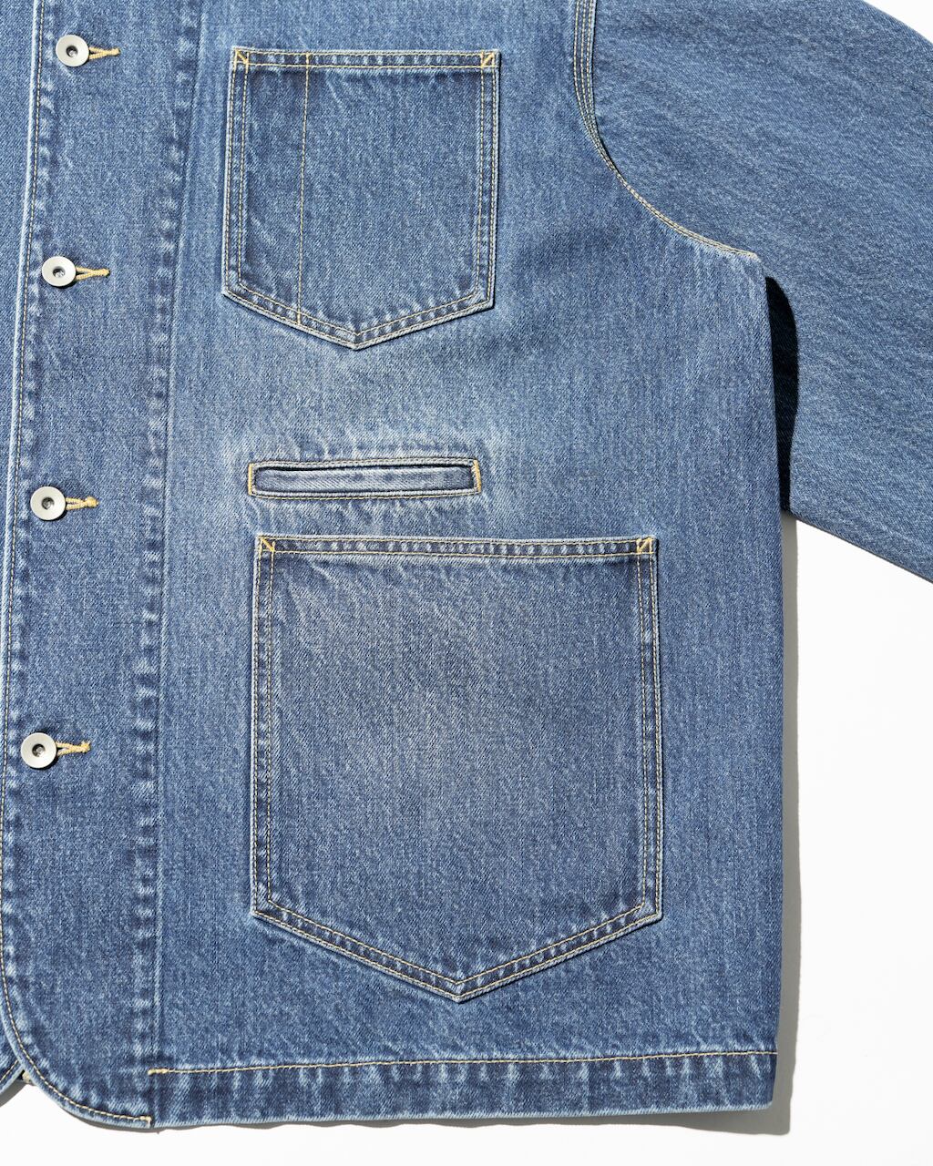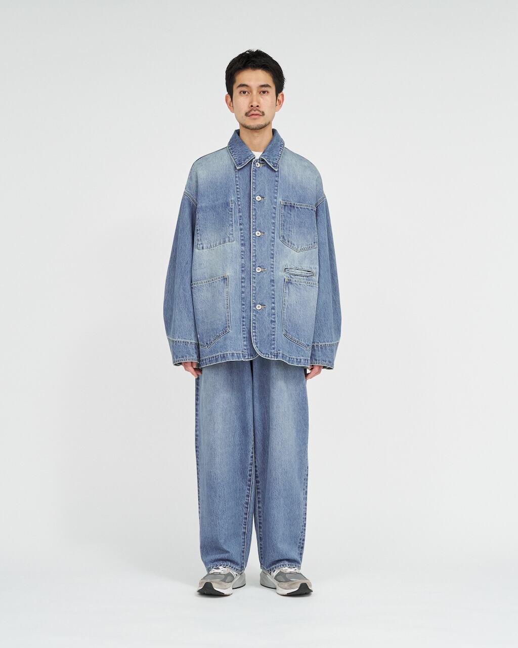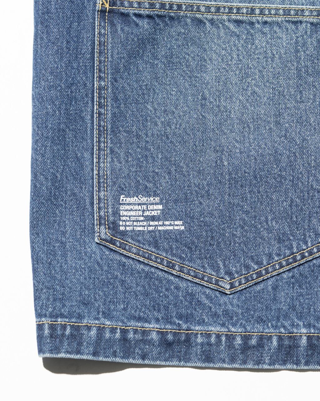 13.5ozのタフなデニムを使用したエンジニアジャケット。ゆったりとしたドロップショルダーのシルエットでFreshServieらしいバランスに。