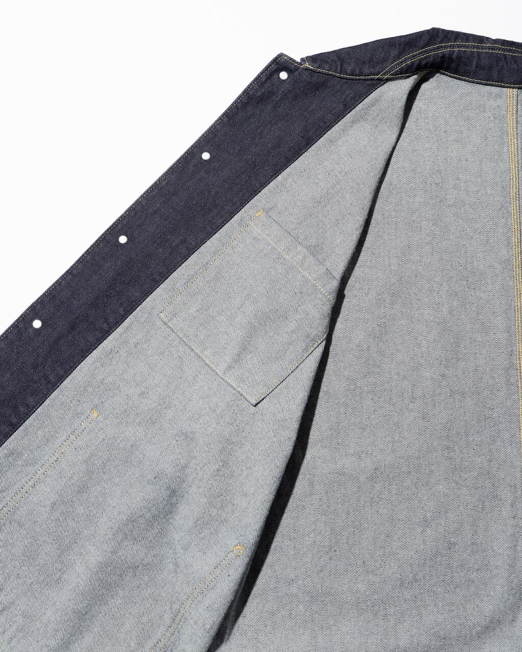 13.5ozのタフなデニムを使用しながら、ONE WASH加工を施すことで、初めから身体に馴染みやすい風合いを実現。FreshServiceらしいゆったりとしたドロップショルダーのシルエットにより、インナーを選ばず、季節をまたいで着用できます。デザインのベースは往年のワークジャケット。
