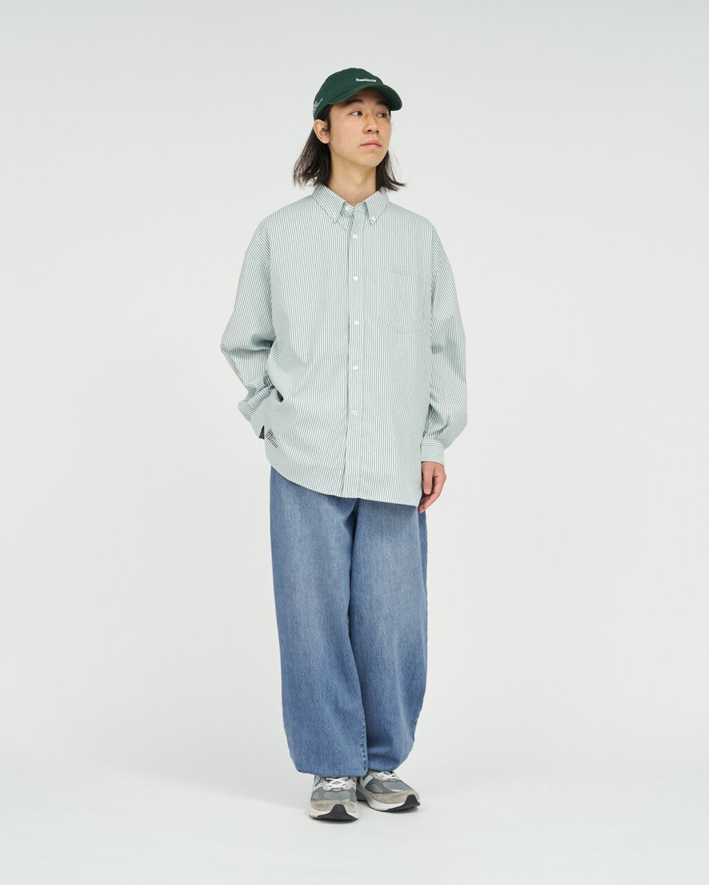 We recommend pairing them with the matching CORPORATE DENIM KUNG-FU COVERALL in the same fabric for a coordinated look. Wearing the set creates a unified feel with its workwear-inspired design, resulting in a mature denim style that avoids looking too rough.