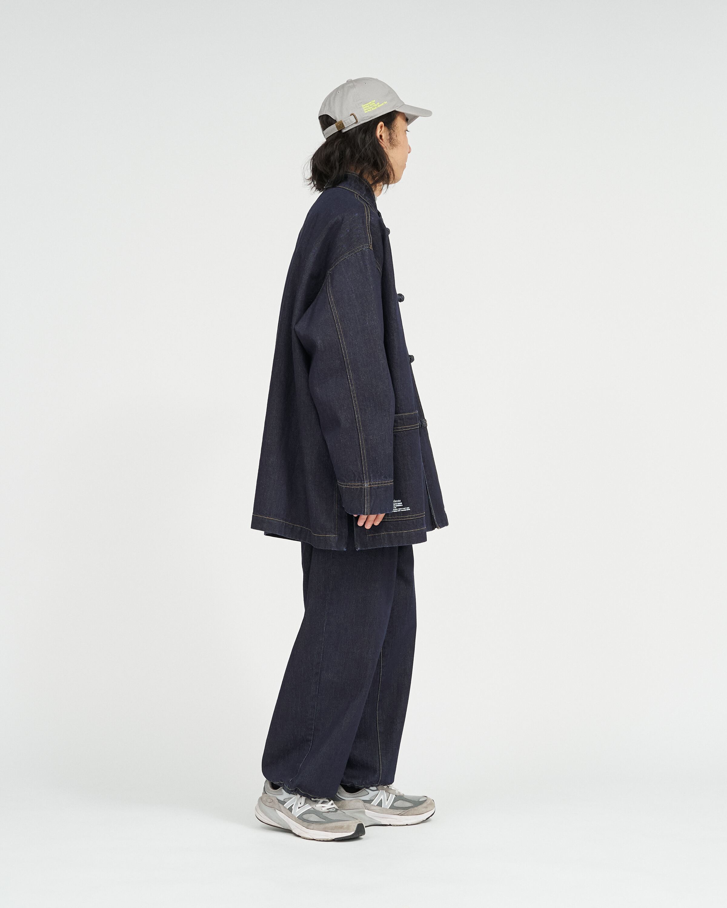 大ぶりなパッチポケットがワークのムードを添えつつ、気負わず穿けるストレスフリーな一本。同素材のCORPORATE DENIM KUNG-FU COVERALLとのセットアップはもちろん、カットソーやシャツ、サンダルまでスタイルを問わずフィット。
