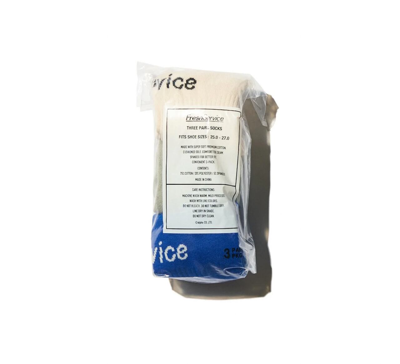 FreshService's signature 3-pack socks, a long-standing staple, have been redesigned with a logo.