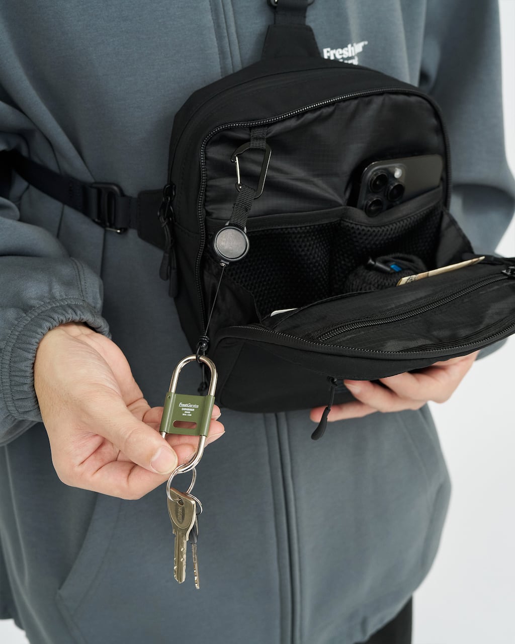 多機能なポケットを搭載したスリングバッグ。必要なものを、確実に・安全に持ち運ぶためのスリングバッグです。