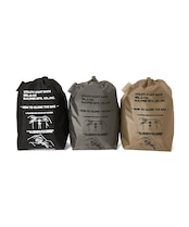 ・Features a drawstring closure with an original drawcord featuring rubber tips at the ends. Graphic print inspired by military bags. Equipped with an interior pocket. Side features a woven label exclusive to this collaboration, matching the fabric color.