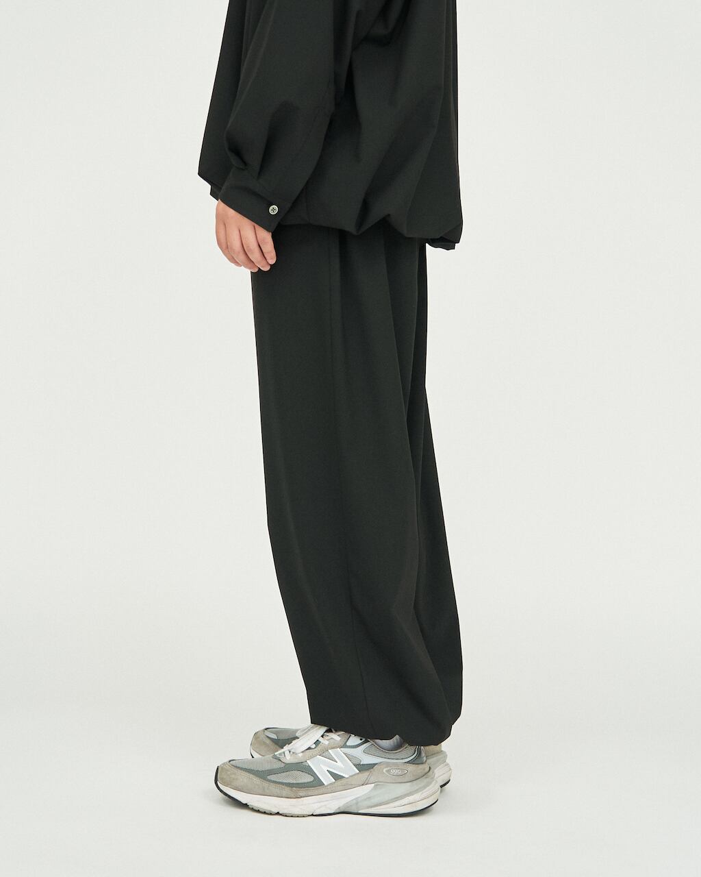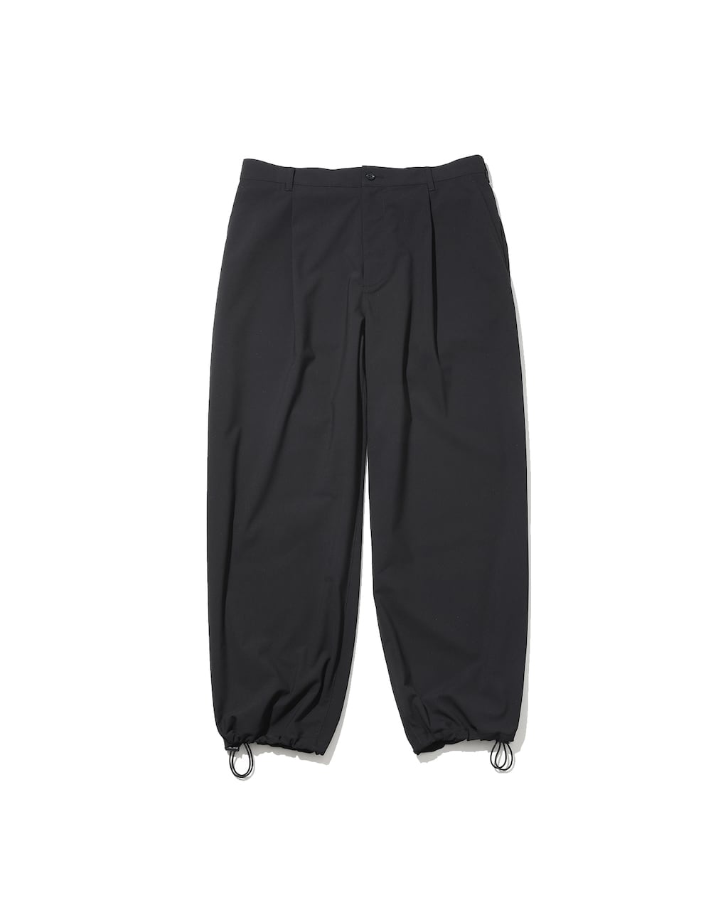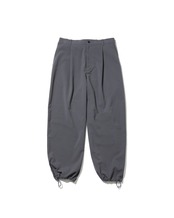 また、ストレッチ性にも優れており、快適な穿き心地を継続します。ウエストおよび裾にはドローコードを配し、シルエットの調整が可能。裾を絞ることで、トラックパンツのような表情に変化させることもでき、スタイリングやシーンに応じた着こなしが楽しめます。
