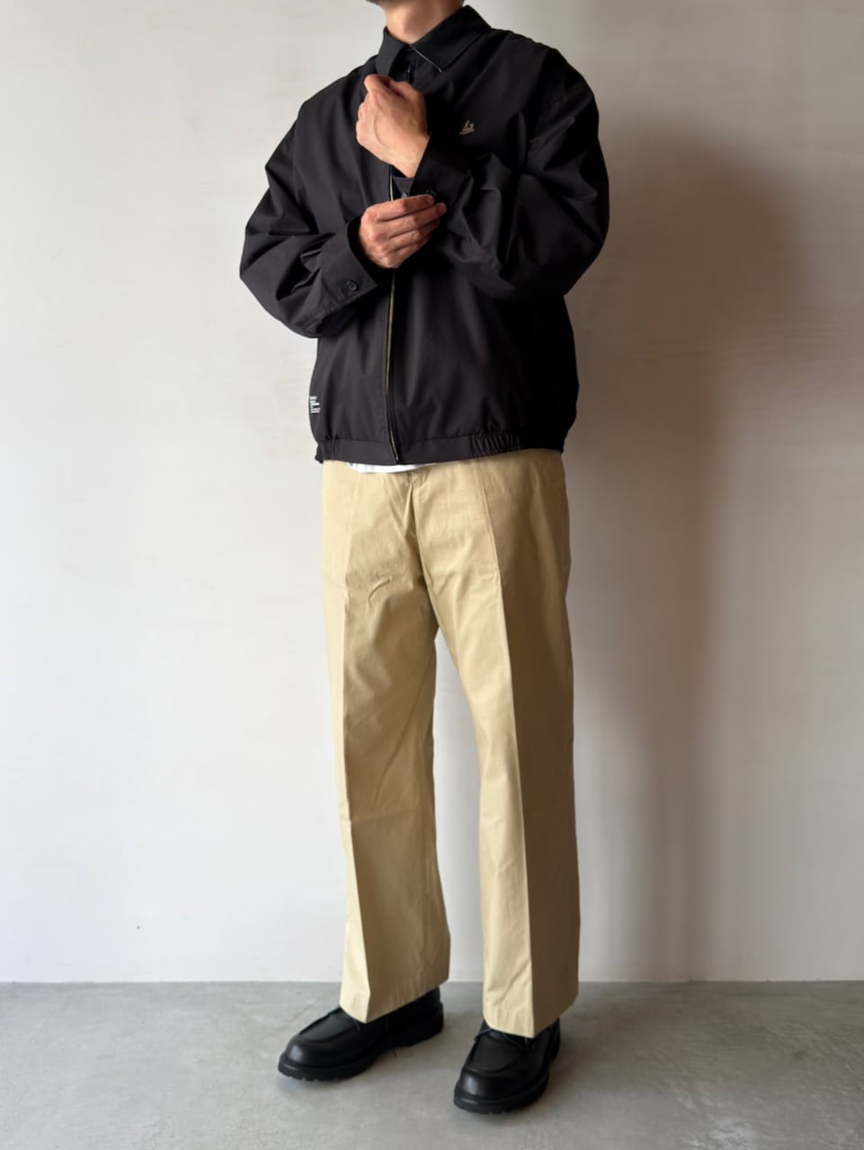 高密度に織り上げたチノクロス素材は、程よいハリと上品な表情を持ち、通年着用にも適した仕上がり。カジュアルに偏りすぎず、ベーシックでありながら存在感のある佇まいが魅力です。