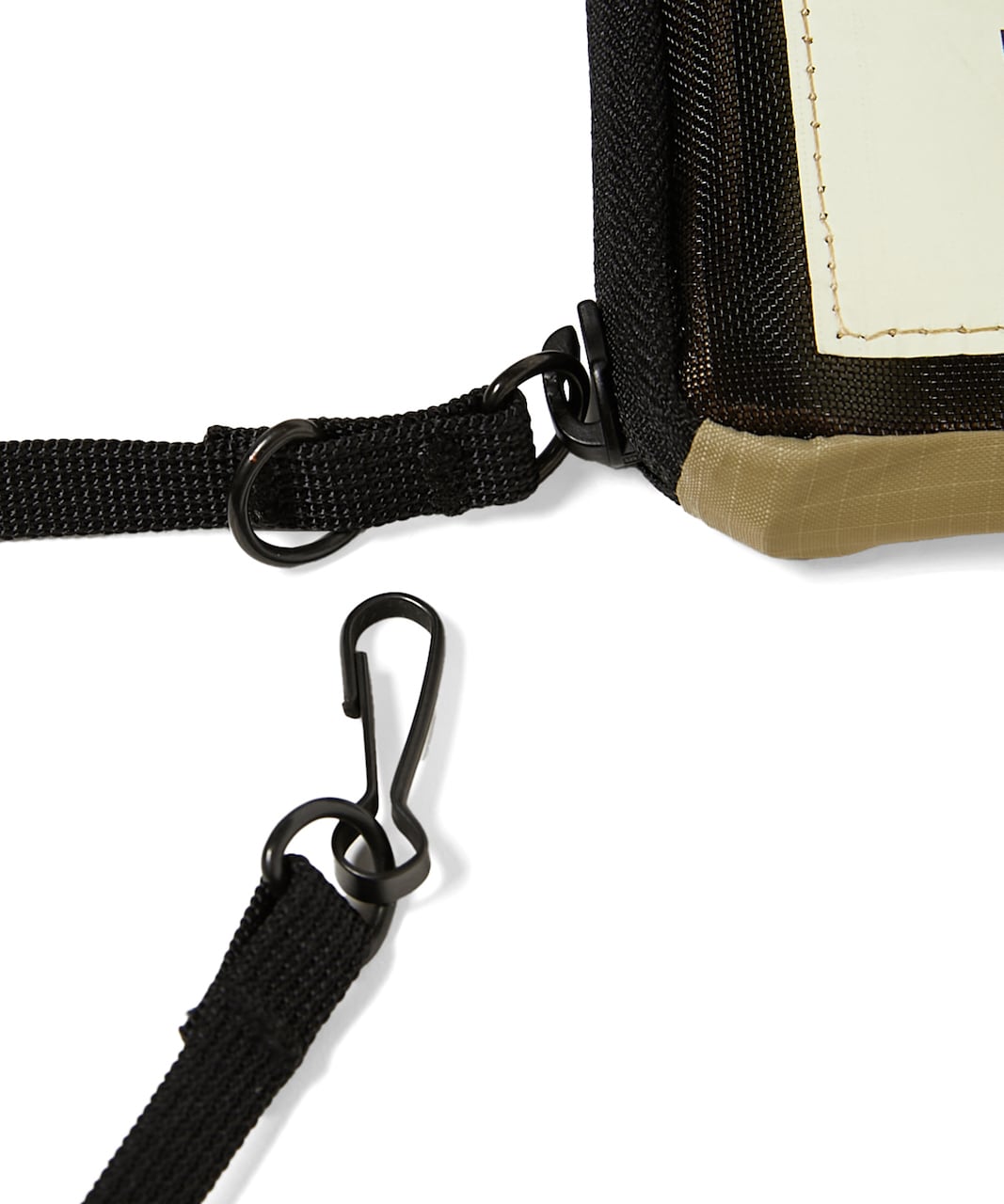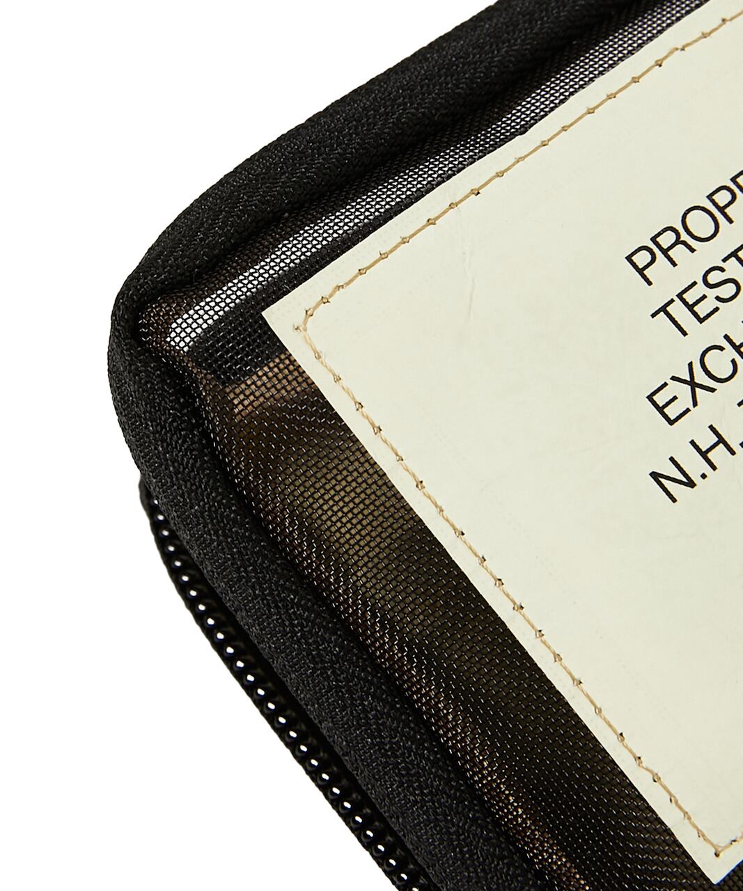 ・3辺にわたって大きく開口。内ポケットを装備し小物を整理できる仕様。ファスナートップに、ナイロンテープのストラップ付き。フロントは通気性と視認性に優れたメッシュ素材を使用。またオリジナルサイズスペック付き。