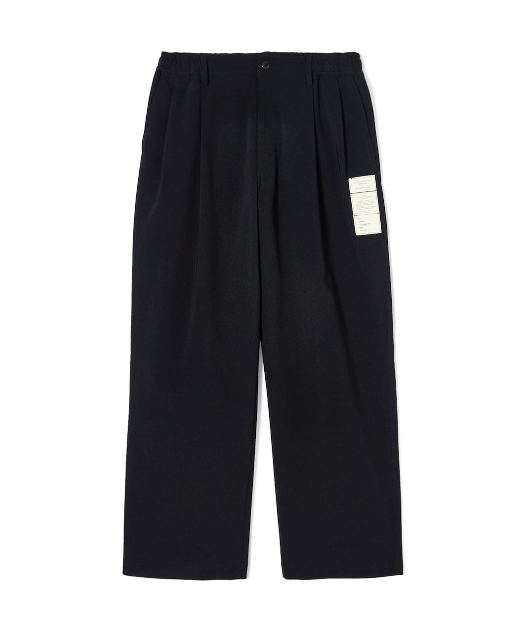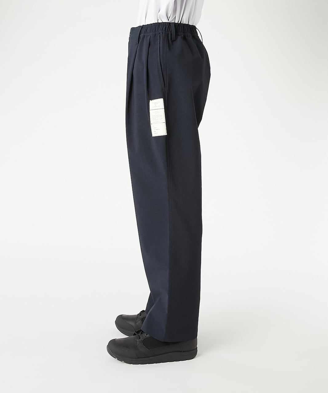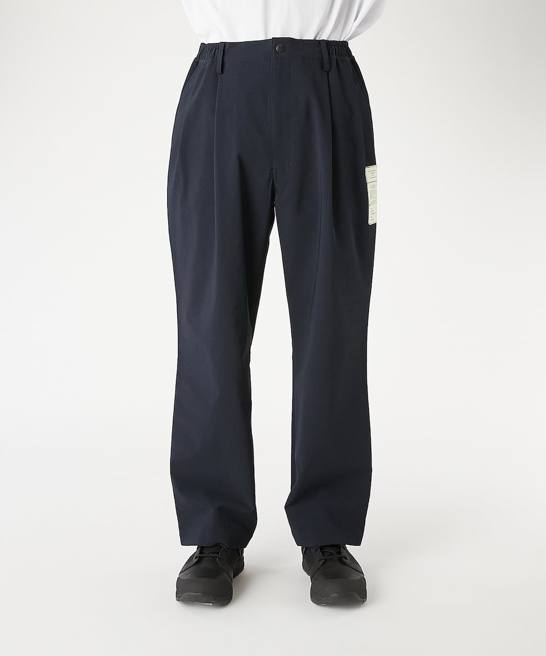 数シーズンにわたり展開されている、定番のテーパードイージートラウザー。できるだけステッチを表に出さない縫製を採用し、ソリッドな印象に仕上げられています。