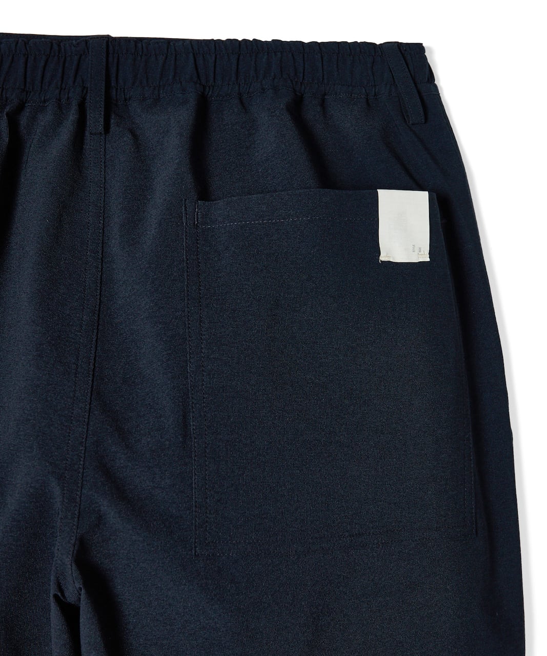 スラッシュポケットによるミニマルな構成に加え、ウエストにはゴムとドローコードを内蔵。細やかなサイズ調整が可能な実用的な設計です。