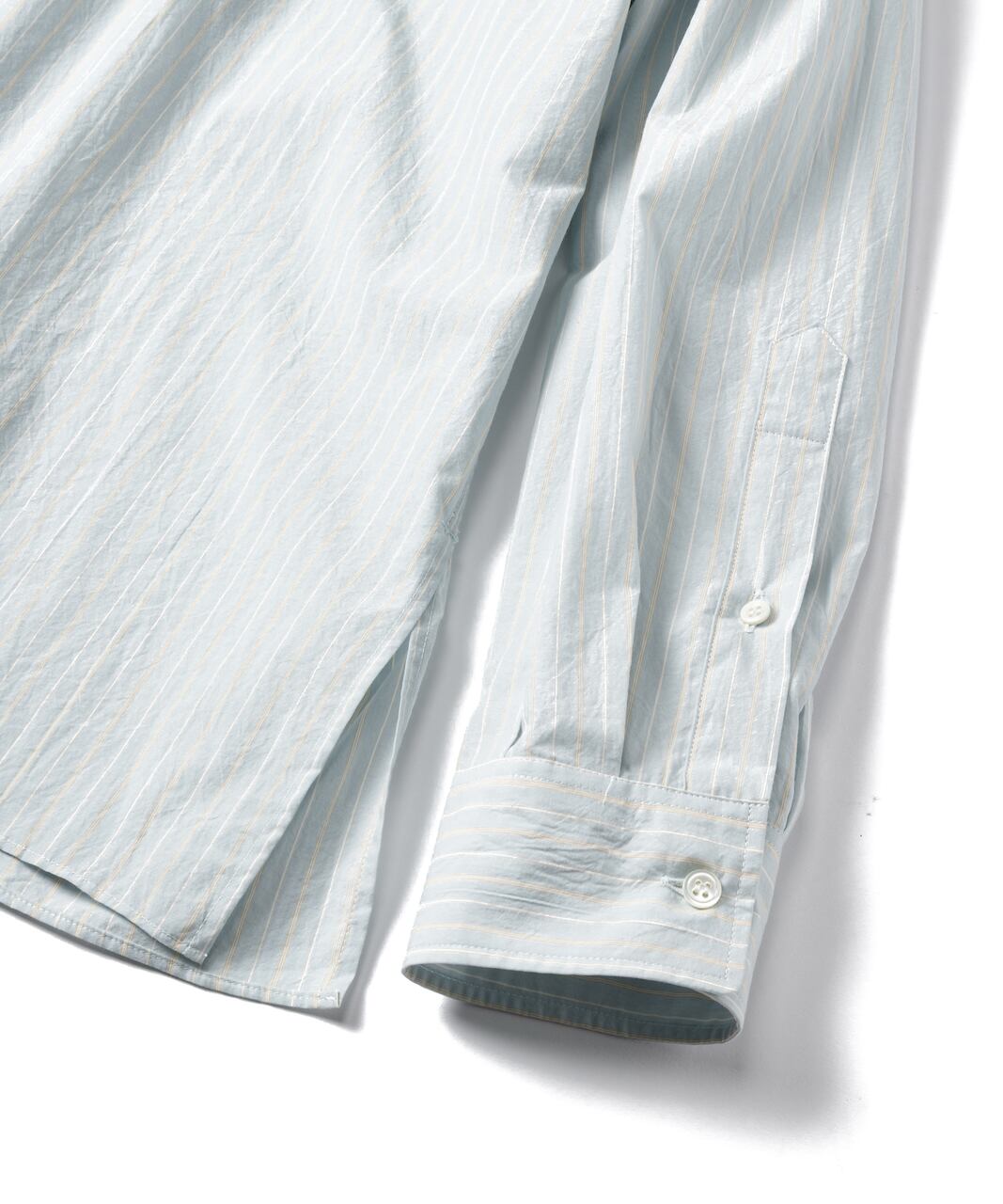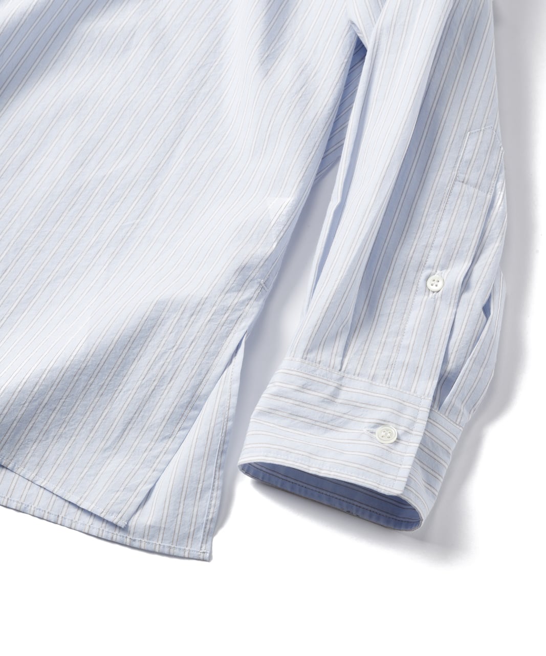 80/1の超長綿を使用した、リゾートムード漂うストライプシャツ。胸元にはグラスホールを備え、さりげない機能性をプラス。