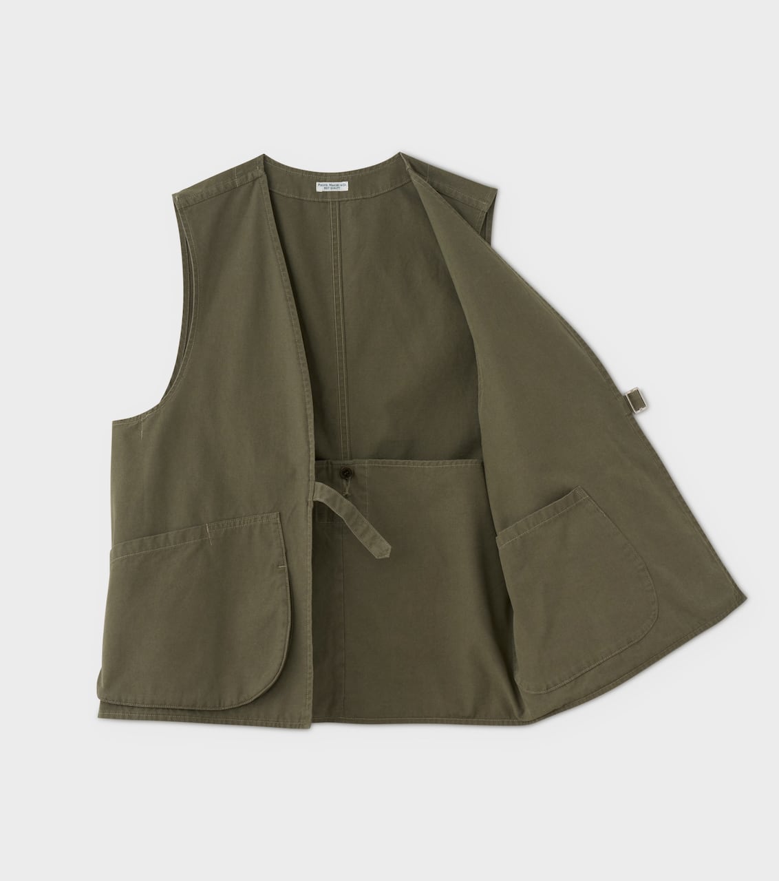 ファティーグジャケットなどに用いられるポプリン素材を、オリジナルカラーで展開したハンティングベスト。クラシックなハンティングベストをベースに再構築し、内側にぐるりと配されたポケットが特徴的な設計。