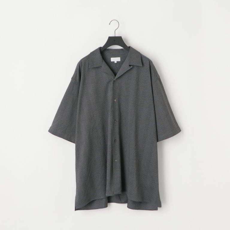 ハリ感とシャリ感のある風合いながら、重厚感のあるチェック柄を落とし込みました。糸の力による凹凸のある表面感は、唯一無二の雰囲気がございます。ディティールは、ドレスシャツを採用し全て巻き伏せ本縫い仕様、貝蝶釦使いです。