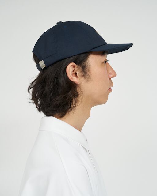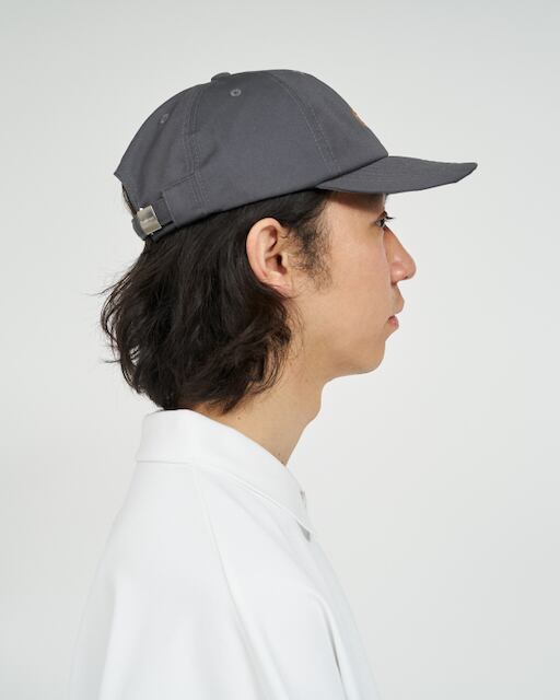 生地は撥水撥油加工を施しており、汚れを弾く素材。フラットバイザーはソフトな芯を使用し、ポケットやカバンに入れるのも容易。後ろのバックルで頭周りも調節可能。
