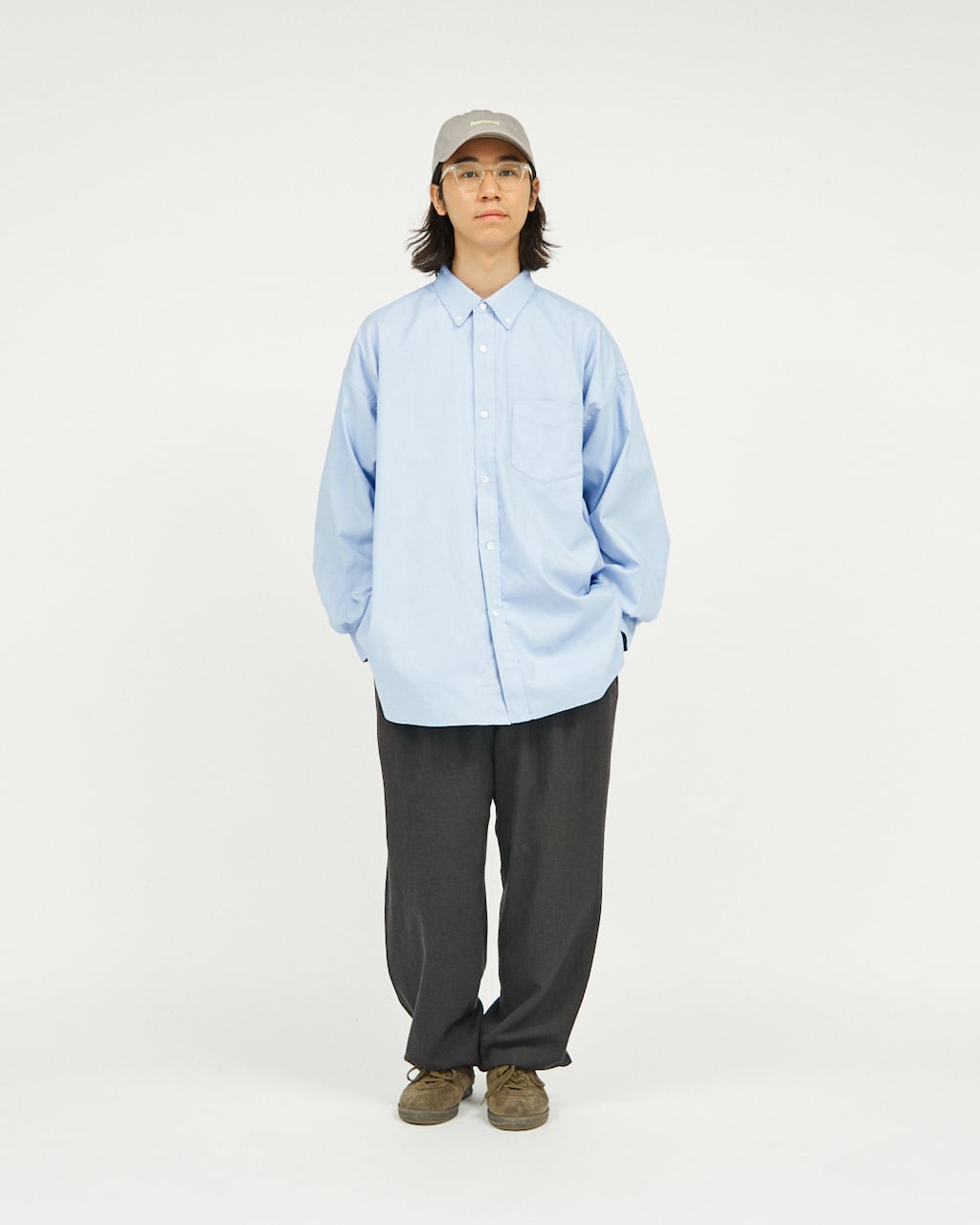 余白のあるリラックス感のあるボタンダウンシャツは、一見するとシンプルなルックスでありながら、サイドシームに大容量のポケットを隠し持つFreshServiceらしいアイテムです。