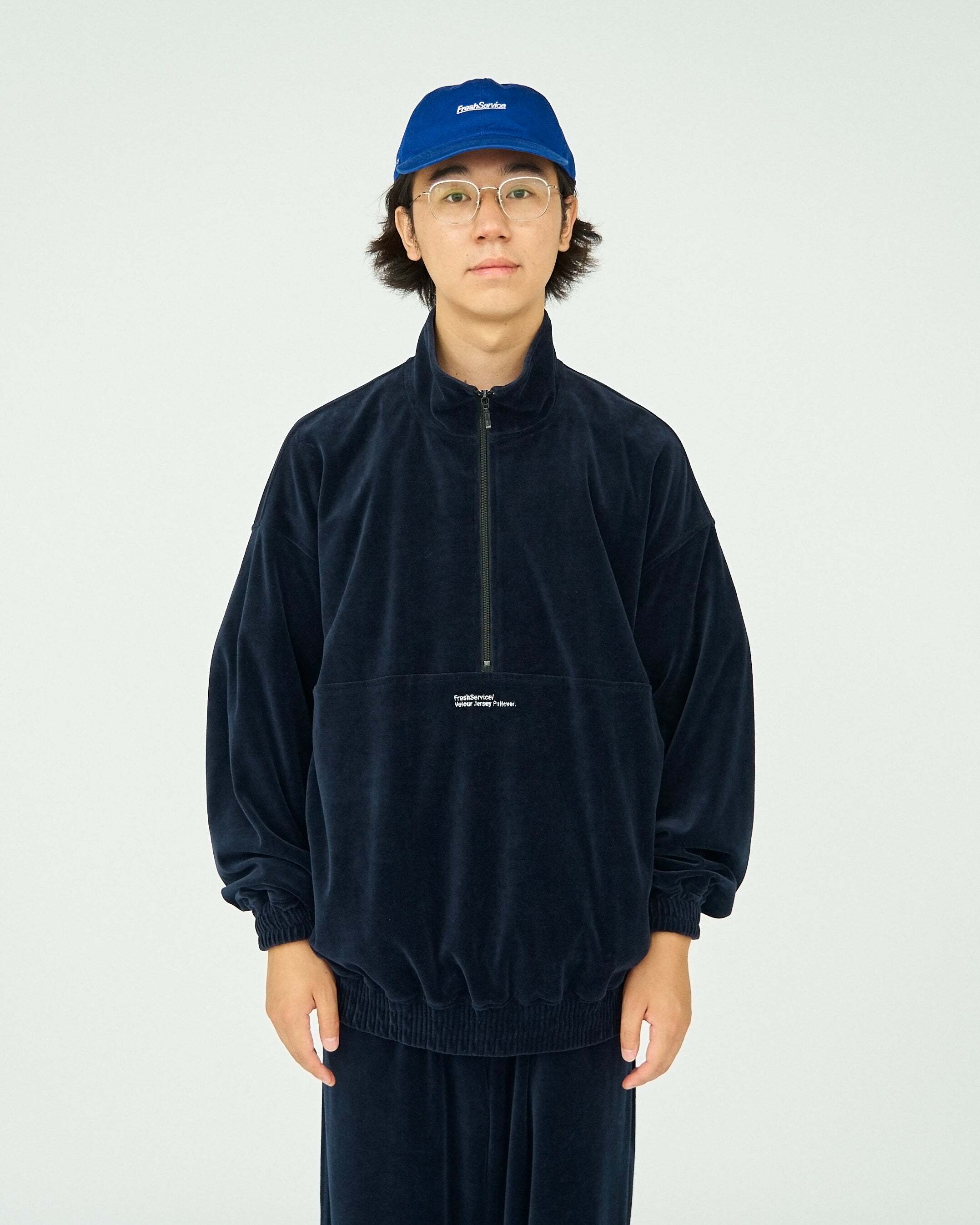 ボリュームのあるゆったりとしたシルエットのハーフジップのスタンドカラータイプで、春先や秋口の着用はもちろん、冬場にはミドルレイヤーとしても最適な1着です。