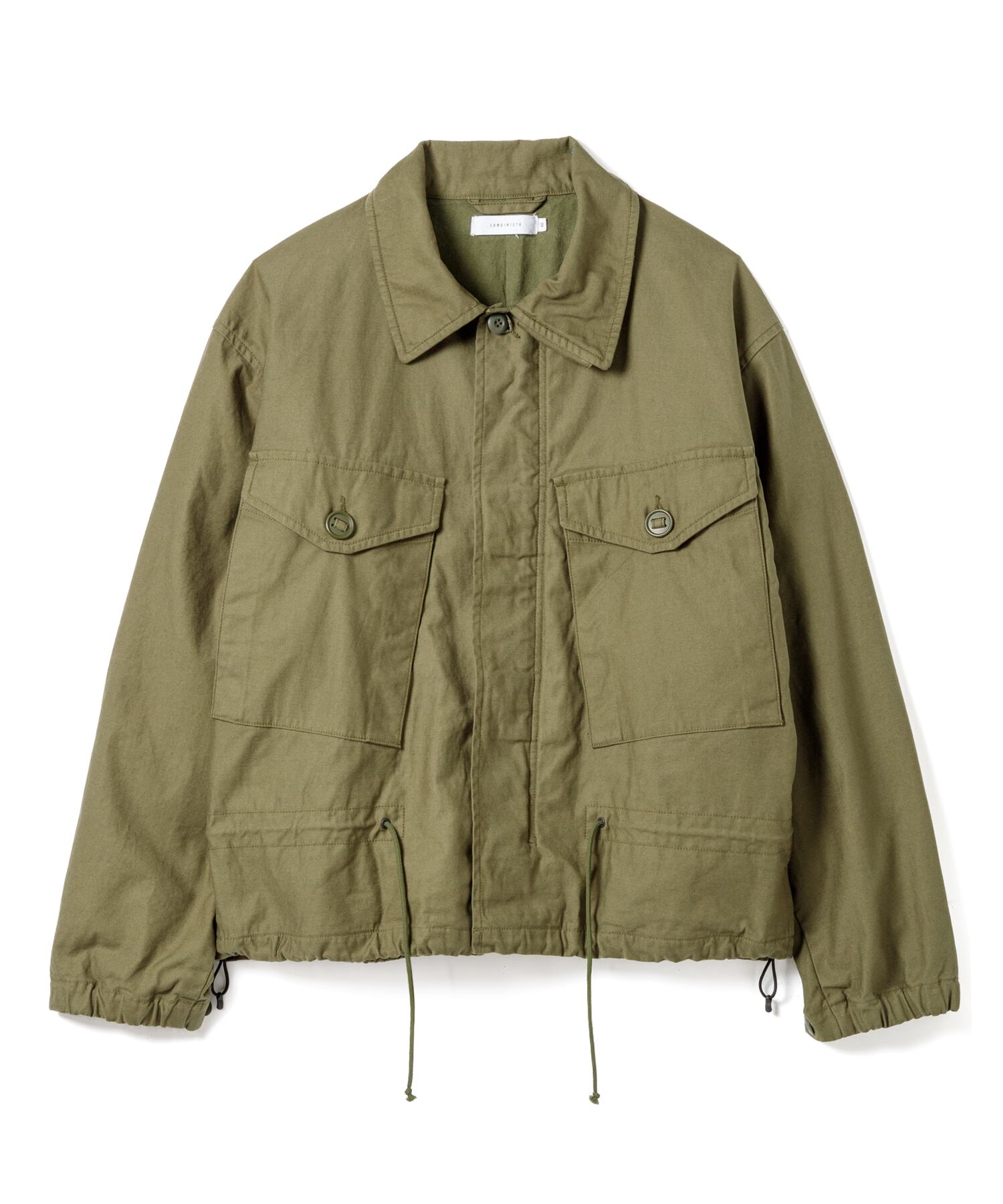 しっかりとしたバックサテン生地を使用した、ディテール満載のユーティリティージャケットです。シルエットは今どきな着丈短めの身幅大きめになります。